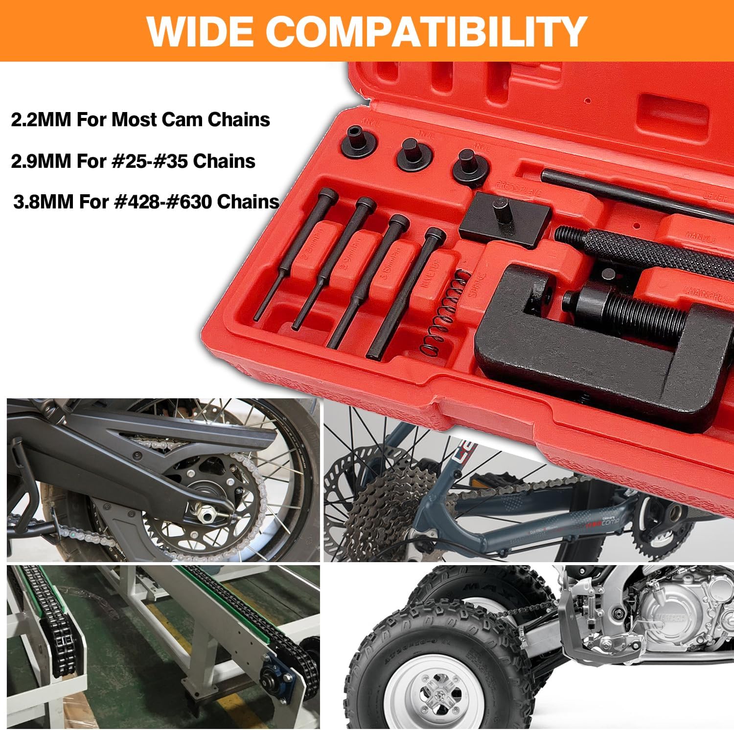 Nuestra herramienta de cadena es lo suficientemente versátil como para ser utilizada en bicicletas, motocicletas, ATV y mucho más.