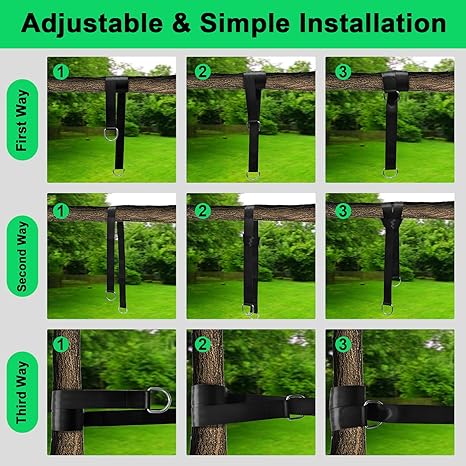 Q165.00 Juego de correas colgantes con capacidad para 2000 libras. Seguridad: Diseñado para colgar un columpio sin dañar el árbol. Para evitar que las correas se desprendan mientras se balancean, diseñamos nuestros mosquetones para incluir un cierre de rosca resistente. Cada correa tiene puntadas adicionales en los lazos de tela del anillo de metal para proporcionar una unión robusta y confiable sin desgarrar las costuras. Los anillos de 0.23 pulgadas y los mosquetones de 0.31 pulgadas de grosor con enrollamiento aumentan la confiabilidad en un 30%. Gran calidad. Las correas son de la misma calidad y resistencia que los cinturones de seguridad. Sostiene hasta 2000 libras cada uno. Tiene una costura doble de caja que lo hace mucho más fuerte. Estas correas extra largas para hamacas son ajustables, lo que significa que puedes envolverlas alrededor de la mayoría de los árboles de cualquier tamaño – de pequeño a grande – y evitar daños. Delicioso y divertido para toda la familia. Correas respetuosas con el medio ambiente: Con nuestro juego de columpios, no tienes que taladrar ni atornillar. Esto te permite instalar fácilmente tu columpio sin dañar tu propiedad o la naturaleza que lo rodea. Es fácil para divertirse y proteger el gran exterior al mismo tiempo. Ahora puedes tener tu columpio instalado de forma segura: hacer tu columpio seguro para que todo el mundo pueda disfrutar es fácil y sencillo con las correas AJ Gear. Ya sea que estés colgando un columpio en la rama de un árbol, en una viga del patio o en un equipo de un patio de recreo, el equipo de AJ está aquí para ayudar a que el proceso sea más fácil y seguro. A diferencia de otros colgadores de columpio, con nuestro juego de correas no necesitarás un taladro ni ninguna otra herramienta para empezar a divertirte. Fácil de usar: Kit para colgar árbol de columpio, se adapta a todos los tipos de columpios. Utilízalo para colgar todo tipo de columpios, columpios de patio, de porche, sillas colgantes, porta bebés y mucho más. Ambas correas se pueden instalar en menos de 5 minutos. No requiere taladros ni herramientas. Las correas también funcionan con cualquier tamaño de hamaca y ajuste. Viene con una práctica bolsa de transporte para que puedas llevar tus correas contigo a cualquier lugar. Las Correas de Super Bear Power son fácilmente portátiles – llévalas contigo de camping, de excursión, a donde quiera que vayas. Enviamos a toda la republica pago contra entrega. Aceptamos tarjeta de crédito y debito.