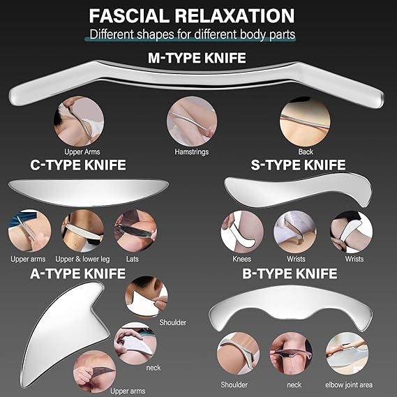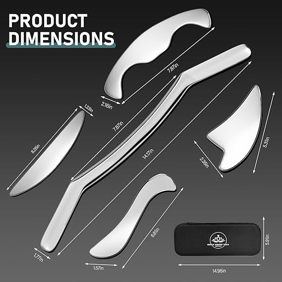 Q495 Juego de Herramientas Gua Sha de Acero Inoxidable – Set de 5 Piezas ✔ Material resistente y duradero Este juego de 5 herramientas Gua Sha está fabricado en acero inoxidable de alta calidad, resistente a la corrosión y diseñado para un uso prolongado. Su acabado pulido tipo espejo y bordes suaves brindan una sensación cómoda al contacto con la piel. ✔ Ideal para masajes y relajación Perfecto para rutinas de masaje corporal, ayudando a liberar tensión acumulada y proporcionando una sensación de relajación y bienestar después de entrenar o al final del día. ✔ Diseño ergonómico y funcional Incluye 5 herramientas con diferentes formas, pensadas para adaptarse a distintas zonas del cuerpo como espalda, cuello, brazos, piernas y pantorrillas. Su diseño facilita el manejo y el control durante el masaje. ✔ Versátil y fácil de usar Apto para uso personal en casa, gimnasio o spa. Ideal para personas activas, deportistas o quienes disfrutan de rutinas de autocuidado y masaje corporal. ✔ Compacto y práctico Fácil de transportar y almacenar. Una excelente opción como regalo para ocasiones especiales. 📦 Incluye: • 5 herramientas Gua Sha de acero inoxidable • Diseño elegante y moderno