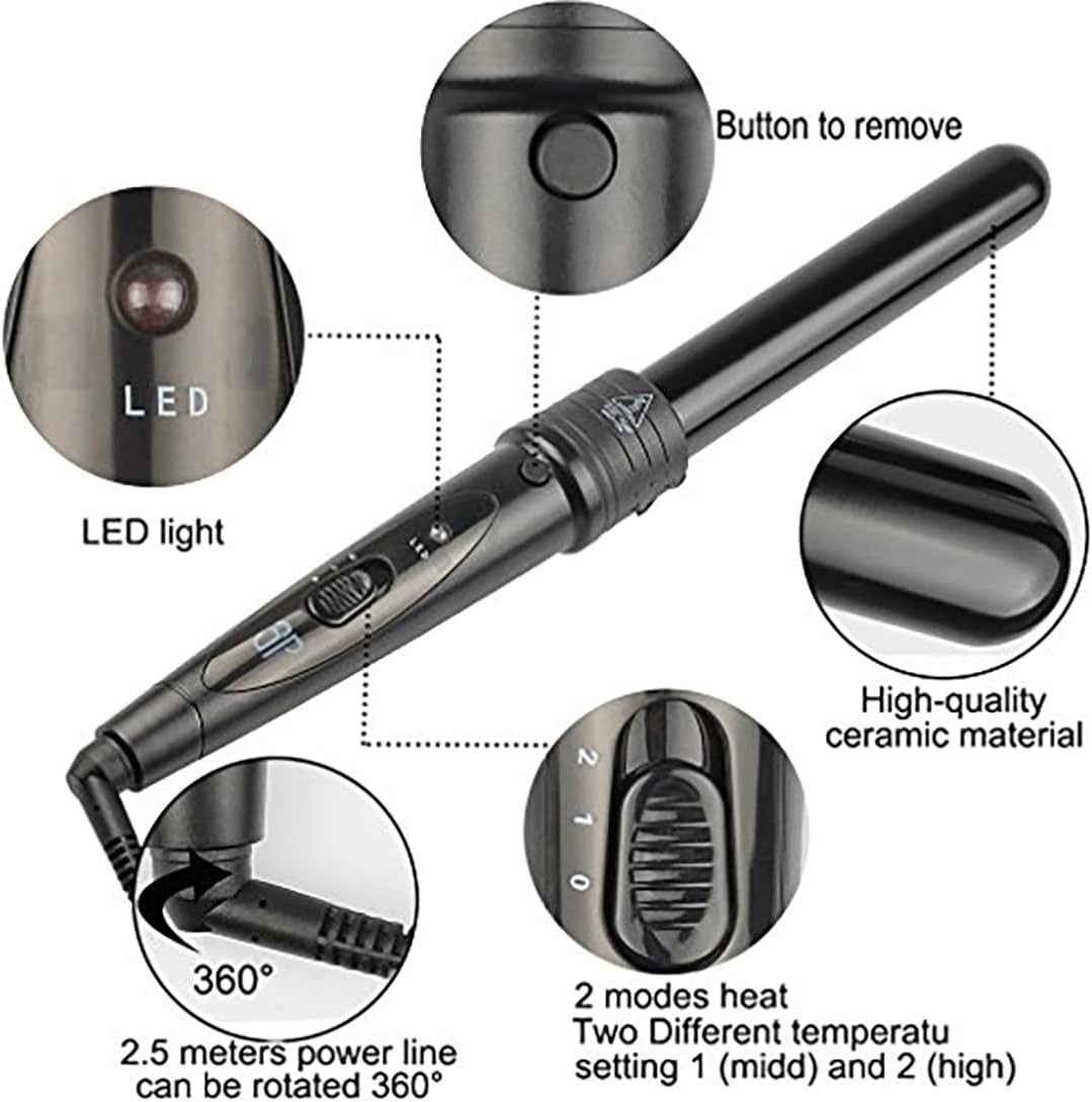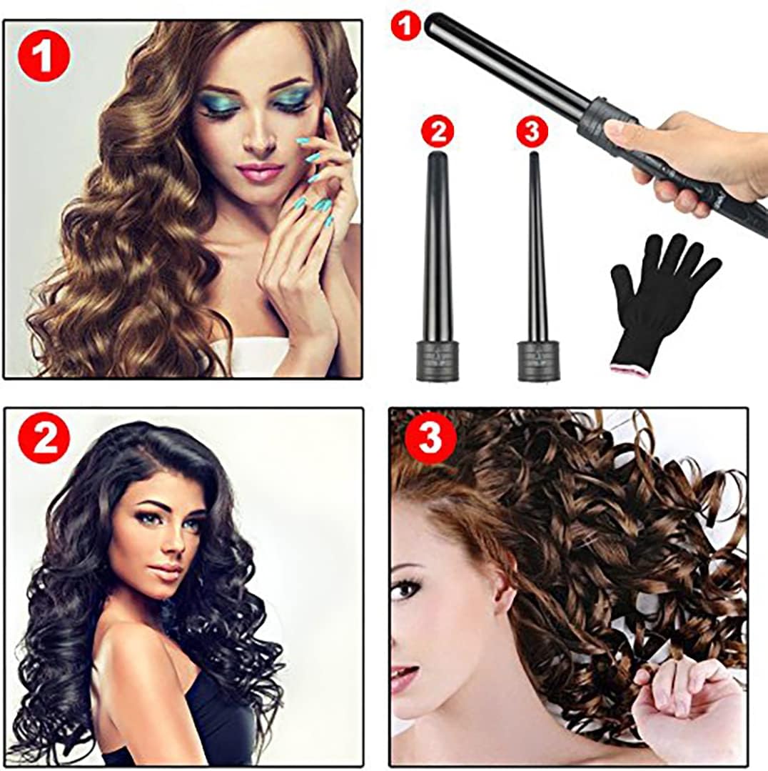 Juego de rizadores 3 en 1: Este rizador de pelo ofrece 3 barriles de cerámica diferentes de diferentes formas y tamaños para permitir la máxima versatilidad con su estilo de rizado para un aspecto más natural. Satisface tus diferentes necesidades de estilo de rizado. Este juego de rizadores te permitirá crear sin esfuerzo cualquier estilo que quieras en casa, en el salón o en movimiento