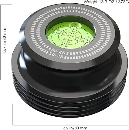 Q235 Kedok Estabilizador de peso de récord, abrazadera giratoria de vinilo de 50 Hz Elimina la amplitud de la vibración de la superficie de registro y estabiliza la rotación. Beneficios para algunos discos ligeramente deformados, reproducción de sonido de alta fidelidad. Hecho de aluminio duradero y encantador acabado negro. Disponible para diámetros de husillo de hasta 0.276 in y se adapta a la mayoría de tocadiscos LP existentes en el mercado. El nivel de burbuja de alta precisión integrado de 50/60Hz muestra la velocidad de rotación del disco LP, lo suficientemente ayuda con el ajuste de velocidad. Enviamos a toda la republica pago contra entrega. Aceptamos tarjeta de crédito y debito.