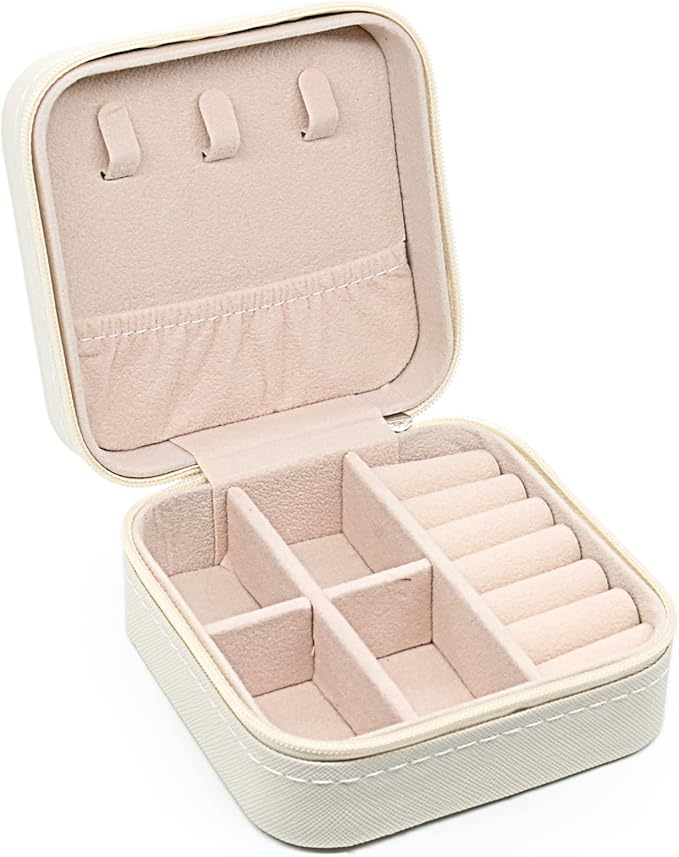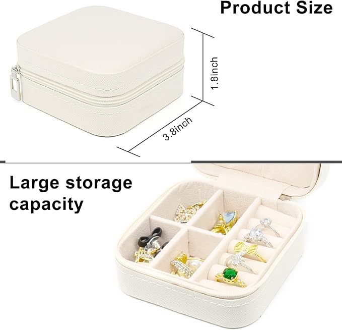 Q145.00 KEINE MARKE Joyero pequeño, estuche portátil de viaje para anillos Mini joyero – blanco* 2 Tamaño individual del producto: 3.9* 3.9* 2.0 in Mini joyero envuelto en piel sintética de alta calidad, forro interior de franela, cremallera de cierre suave para proteger tus joyas de daños externos. Mini estuche de viaje para joyas con tres ganchos en la tapa superior y un bolsillo elástico para guardar y proteger los collares. La parte inferior tiene dos divisores extraíbles y un soporte de anillo. Joyero pequeño para guardar aretes, collares, anillos, relojes, pintalabios, aretes y otros pequeños accesorios de joyería. Te proporcionamos una consulta posventa dentro de las 24 horas del día en Amazon. Enviamos a toda la republica pago contra entrega. Aceptamos tarjeta de crédito y debito.