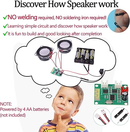 Q220.00 Kit de caja de altavoces Bluetooth DIY amplificador de sonido electrónico. Kit de altavoz Bluetooth para bricolaje: sin soldador, nuestros kits incluyen componentes de madera cortados con láser, 2 piezas de subwoofer de 2 pulgadas, 4 ohmios, 3 W, altavoz de rango completo, placa amplificador Bluetooth de doble canal, instrucciones claras y simples, necesita ser alimentado por 4 baterías (no incluidas) cuando se usa, y se puede conectar al teléfono móvil o computadora Educación STEM: al practicar el montaje de este proyecto STEM, no solo desarrolla las prácticas de los niños, sino que mejora su pensamiento lógico, confianza en sí mismos y capacidad de trabajo en equipo. Es perfecto para el experimento de ciencias STEM en la escuela para permitir que los estudiantes aprendan sobre ingeniería y circuito Calidad de sonido superior y fácil conexión: está equipado con dos altavoces de alta definición que reproducen con precisión cada nota con un sonido rico y sin ruido. Te encantará lo fácil que es conectar tu teléfono al altavoz inalámbrico y disfrutar de tu música favorita Regalo para niños: todas las piezas del kit de manualidades están hechas de madera y materiales seguros para experimentos científicos. Una vez montado, reproduce música hermosa, por lo que es perfecto para proyectos de padres e hijos en casa. Regalo ideal para niños y niñas de 8 años en adelante. ¿Por qué no dar un regalo donde los niños puedan aprender algo? ¿Por qué elegirnos? No importa qué problema encuentres, por favor ponte en contacto con nosotros y te responderemos y resolveremos tu problema en 24 horas. Si tienes alguna pregunta, no dudes en ponerte en contacto con nosotros y nos aseguraremos de tu satisfacción. Enviamos a toda la republica pago contra entrega. Aceptamos tarjeta de crédito y debito.