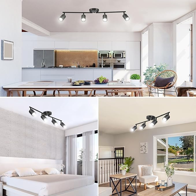 Q395 Kit de iluminación LED de 4 luces, iluminación de techo giratorio, bombilla no incluida Decoración de moda y estilo industrial: el kit de iluminación de pista LED Boostarea de 4 luces en negro mate con líneas clásicas completa el aspecto con un toque de carácter industrial moderno. esta lámpara colgante de techo se adapta perfectamente a cualquier estilo de decoración, desde el industrial moderno hasta el estilo granja, lo cual es una gran idea para tu sala de estar, cocina, comedor, dormitorio, habitación de los niños, pasillo, porche, escaleras, bar, hotel y restaurante, cafetería, exhibición de arte. Ajuste universal y fácil instalación: estas lámparas de cocina tienen el toldo estándar de luces de techo con varillas roscadas ajustables, tamaño del toldo (4.7 pulgadas de profundidad x 0.98 pulgadas de alto). Todos los accesorios de montaje y la guía de instalación están incluidos en el paquete para una instalación rápida. Puedes instalar y ajustar fácilmente en cualquier lugar que desees, ahorrando el costo de contratar electricistas. Compatible con la mayoría de las bombillas de base mediana estándar: puedes utilizar cualquier bombilla de base estándar GU10 (máximo 35 W para cada bombilla) como LED (máx.) Bombilla LED de 15W (equivalente a 35W de bombilla incandescente), bombillas CFL, incandescentes y halógenas (bombillas no incluidas). Nuestra lámpara de techo semiempotrada también está diseñada para ser regulable cuando se utiliza con una bombilla regulable e interruptor de atenuación compatible. Creando la atmósfera que deseas. Enviamos a toda la republica pago contra entrega. Aceptamos tarjeta de crédito y debito.