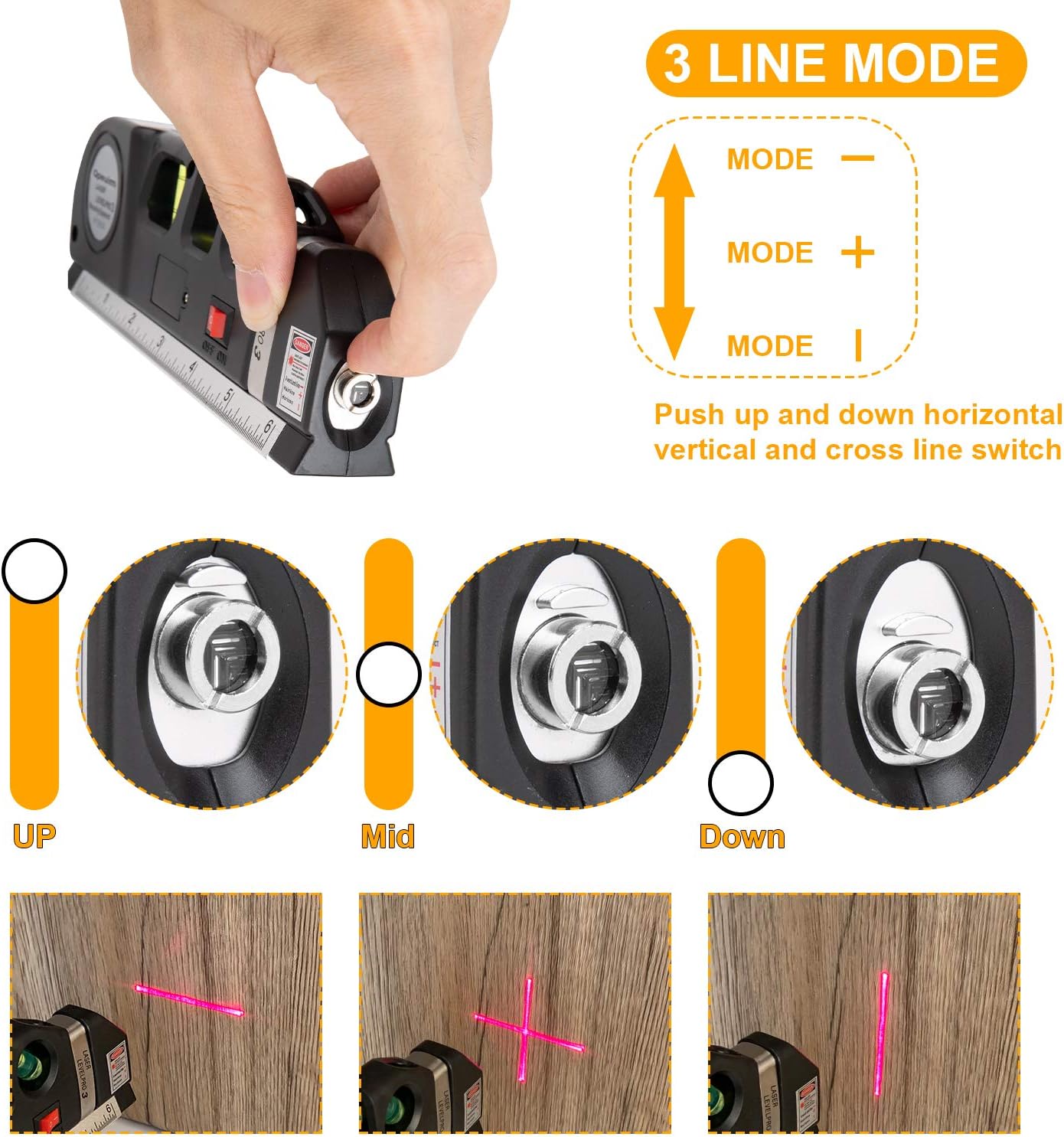 Nivel láser multifunción: la herramienta de nivel láser funciona para interiores. Diseñada para cualquier situación en la que se necesiten mediciones precisas, como colgar estantes, armarios, azulejos y marcos de fotos con precisión.