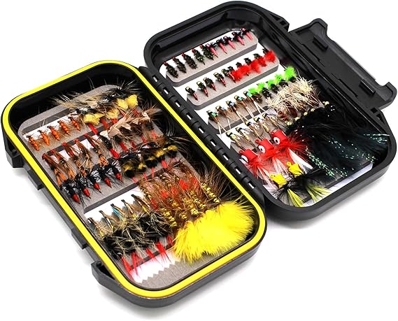 Q345 Kit surtido de moscas de pesca con mosca, seco y húmedo Nyphms Tenkara Popper Streamer Woolly Moscas efectivas: 30/50/60/100/168 piezas de moscas cubren las mejores moscas de todos los tiempos. Como Wolly Bugger, Popper, Bumble, Peackcock Ninfa, ya sea que seas un principiante o simplemente quieras mejorar tu juego, la posibilidad de atrapar peces es grande. 【Pescado objetivo】Para la captura de truchas, Grayling y salmón, Steelhead, Lucio, carpa. Caja de moscas impermeable: la caja mide 5.4 x 3.4 x 1.4 in (5.2 x 3.5 x 1.4 pulgadas), organiza tus moscas en las mejores condiciones, fácil de transportar variedad de moscas para días de pesca. Tamaño del gancho: todas las moscas atadas a mano van desde el #6 hasta el #18. El tamaño de los ganchos y moscas se hace más grande a medida que el gancho se hace más pequeño. Gran regalo: gran juego de regalo de pesca con mosca para pescadores. Enviamos a toda la republica pago contra entrega. Aceptamos tarjeta de crédito y debito.