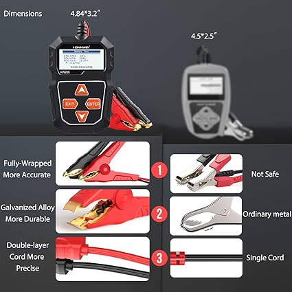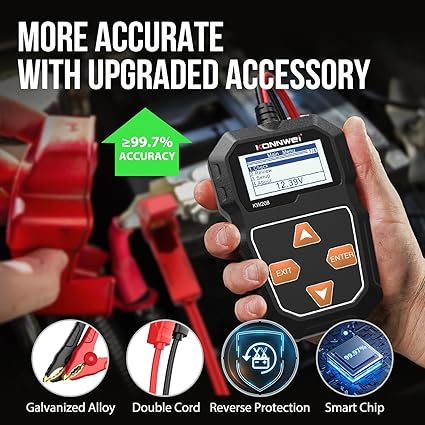 Q405.00 KONNWEI KW208 – Probador de batería de coche de 12 V, probador de carga CCA 100-2000. Probador de batería de automóvil confiable: KW208 es el probador de batería más rentable en comparación con otras marcas, tiene todas las funciones que necesitas y el gasto más bajo que puedes pagar. KW208 puede probar todas las baterías de 12V 100-2000CCA incluyendo baterías inundadas regulares, placa plana AGM, espiral AGM o baterías de gel. Proporcione un análisis general de la salud de las baterías y le ayude a conocer su estado de antemano antes de que muera. El probador de batería KW208 admite pruebas de arranque y sistema de carga, también prueba de alternador y arranque. Regalo perfecto de Navidad y Año Nuevo para hombres y regalos para mujeres. Guarda cómodamente este cargador de batería para baterías en tu guantera o garaje, listo para usar cuando sea necesario. Muestra los datos generales de las baterías: el probador de carga de batería KW208 de 12 V te ofrece parámetros confiables y generales de la batería, como voltaje, resistencia interna, amplificador de arranque en frío y capacidad AH, salud de la batería y estado de carga. Además, el probador de batería CCA también le mostrará asesoramiento profesional sobre si reemplazar o recargar la batería. Nuevo reemplazo disponible para cualquier problema de calidad. 【 > 99.99% de alta precisión】Gracias al potente e inteligente chip AI de KW208, proporciona más del 99.99% de informes de prueba precisos en milisegundos, mejorando en gran medida la velocidad de prueba y la precisión de las pruebas en comparación con otros probadores de batería. Además, KW208 es el único probador de batería que tiene más de 6000 calificaciones y es el probador de baterías de automóviles más confiable y popular en Amazon. Plug and Play: el analizador de carga de batería KW208 te permite probar baterías tanto dentro del vehículo como fuera del vehículo, e incluso probar baterías muertas. Simplemente conecta los clips del probador con la batería, luego se encenderá y estará listo para probar y analizar la batería. ¡Es así de fácil! Probador de arranque y alternador: KW208 no solo es un gran probador de carga de batería que prueba el sistema de arranque y carga de las baterías, sino que también puede probar las condiciones de carga del alternador y el arranque del arranque. Y puede cambiar hasta 8 idiomas para diferentes necesidades. Enviamos a toda la republica pago contra entrega. Aceptamos tarjeta de crédito y debito.