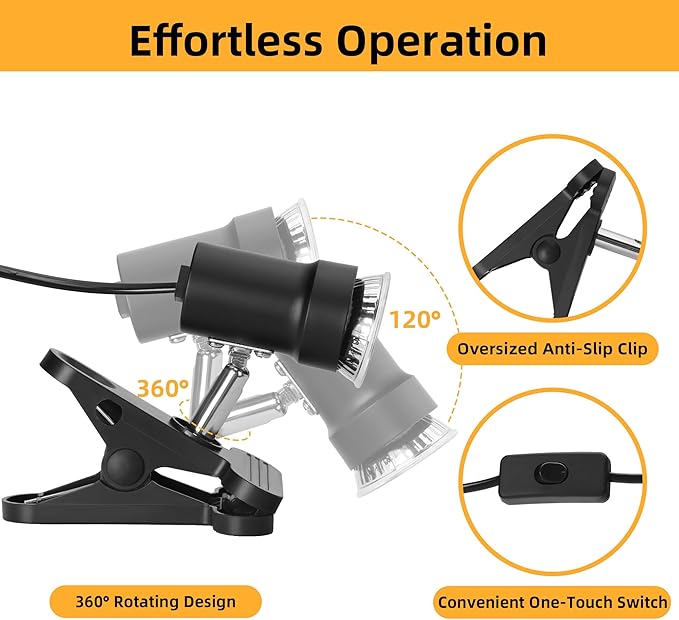 Q135 Lámpara de calor para pecera con abrazadera giratoria de 360° (no incluye luz) Novique Lámpara de calor para reptiles: ¡Crea luz solar natural y calidez en cada momento para tu querida mascota! Esta lámpara de punto para tomar el sol simula perfectamente la luz solar para proporcionar la luz natural y el calor que las mascotas de reptiles necesitan. Diseño de seguridad y durabilidad que garantiza un uso estable y duradero. Operación simple de enchufar y usar, es adecuado para muchas mascotas de reptiles como lagartos, tortugas y serpientes, y satisface ampliamente las necesidades de diferentes hábitats, deja que tus mascotas favoritas disfruten de una vida saludable como en la naturaleza Luz solar simulada: la lámpara de calefacción solar simulada Novique imita perfectamente el calor natural de la luz solar. Su diseño de iluminación gran angular reproduce de manera más realista el entorno de iluminación natural y garantiza una temperatura estable y uniforme, creando lo más cercano a un hábitat natural y saludable para tu mascota. Seguridad y durabilidad: esta lámpara giratoria de 360° para reptiles cuenta con una carcasa de metal de alta calidad para una construcción robusta y una excelente resistencia a las caídas. El cuerpo de la lámpara está equipado con portalámparas E27 de cerámica de alta resistencia a la temperatura, disipación de calor segura y no tóxica rápida, para garantizar el uso de forma segura y confiable. Enviamos a toda la republica pago contra entrega. Aceptamos tarjeta de crédito y debito.7