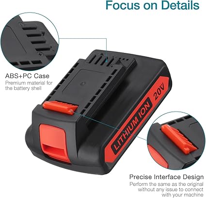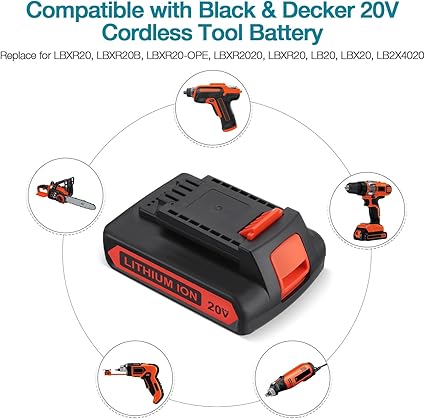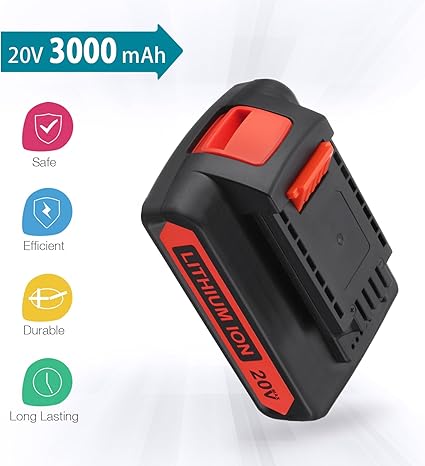 Q245.00 LBXR20 20V 3.0Ah Reemplazo para batería de litio Black and Decker 20V Max. Especificaciones de la batería: repuesto para batería de iones de litio Black and Decker de 20 V | Capacidad: 3000 mAh | Tipo de batería: iones de litio | Voltaje: 20 V 60 Wh Compatibilidad perfecta: la batería de iones de litio LBXR20 de 20 V MAX es compatible con todos los recortadores Black and Decker de 20 voltios, taladro, recortador de setos, LBX20, LBX4020, LB2X4020-OPE, CHH2220, LDX120C, LDX120SB, LGC120, LHT2220, LST1ST120. 48, LST. 220, LSW20, etc 【Versión mejorada】Hecho de celdas de batería premium, se puede cargar libremente sin efecto memoria. La batería Black Decker lbxr20 ofrece una vida útil más larga y conserva su carga 5 veces más que las baterías NiCad similares de 18 voltios, mantiene una carga hasta 500 días 【Peso más ligero】Fácil de instalar y quitar, compacto y más ligero que evita la fatiga por largas horas de trabajo. El microchip integrado integrado evita la sobrecarga y otros fallos para prolongar la vida útil de la batería Servicio posventa confiable: esta batería tiene un reembolso y reemplazo de 30 días y una garantía de 12 meses a partir de la fecha de compra. También le proporcionaremos un servicio integral al cliente las 24 horas. Enviamos a toda la republica pago contra entrega. Aceptamos tarjeta de crédito y debito.