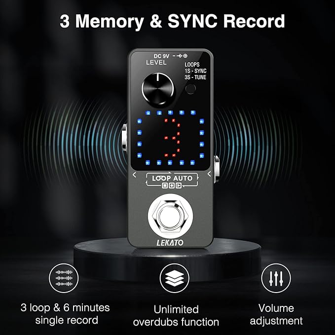 Q495.00 LEKATO Pedal Looper, pedal Looper de guitarra (no incluye el conector). 3 Bucles 18 Min’ Memoria: estación de looper Lekato con 3 bucles, una grabación de bucle único hasta 6 minutos de duración de grabación única, tiempo total de grabación es de 18 minutos. El indicador de tiempo visual de bucle el progreso actual del tiempo de bucle, solo necesita jugar y creativo Función de grabación y sintonizador sincrónico: bucle de guitarra LEKATO con modo de grabación síncrono que puede entrar en el estado de grabación en cualquier momento durante la reproducción para evitar perderse ningún momento. Y incorpora la función de afinación de alta sensibilidad. La conmutación continua, no causará interrupción discordante entre la frase Audio sin comprimir: frecuencia de muestreo de 48K/24bit, sin pérdidas, sin comprimir, calidad de tono profesional, looper con audio de alta calidad y diseño analógico-seco. El pedal de efecto de guitarra Lekato Loop Auto te hace disfrutar de un tono puro sin ruido añadido Carga y descarga sin pérdidas: los buscadores de guitarra LEKATO pueden importar/exportar la música a/desde la PC fácilmente con USB para cargar/descargar archivos wav loop. El pedal looper de guitarra también puede guardar archivos grabados automáticamente incluso la unidad está apagada. Garantiza tu creatividad de alta calidad (el cable USB está incluido) Fácil de usar: bucle claro con sobredoblaje ilimitado. Grabar, Deshacer/Rehacer, Detener y Borrar se accede a través de diferentes comandos de pie con un solo botón. La operación de un solo botón establece el volumen de reproducción de bucle. Estación de bucle Lekato que conecta el pedal externo, sin necesidad de unidad, sin necesidad de cambiar el bucle con tu mano. Enviamos a toda la republica pago contra entrega. Aceptamos tarjeta de crédito y debito.
