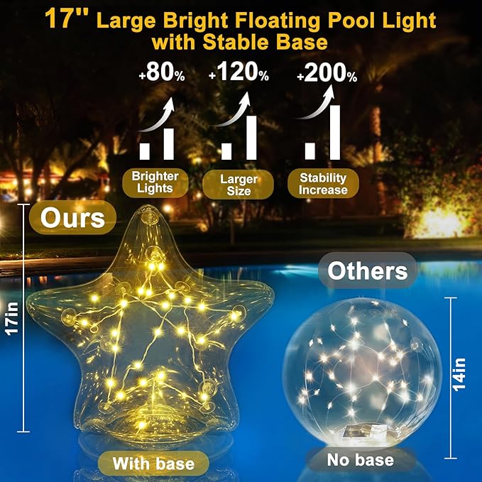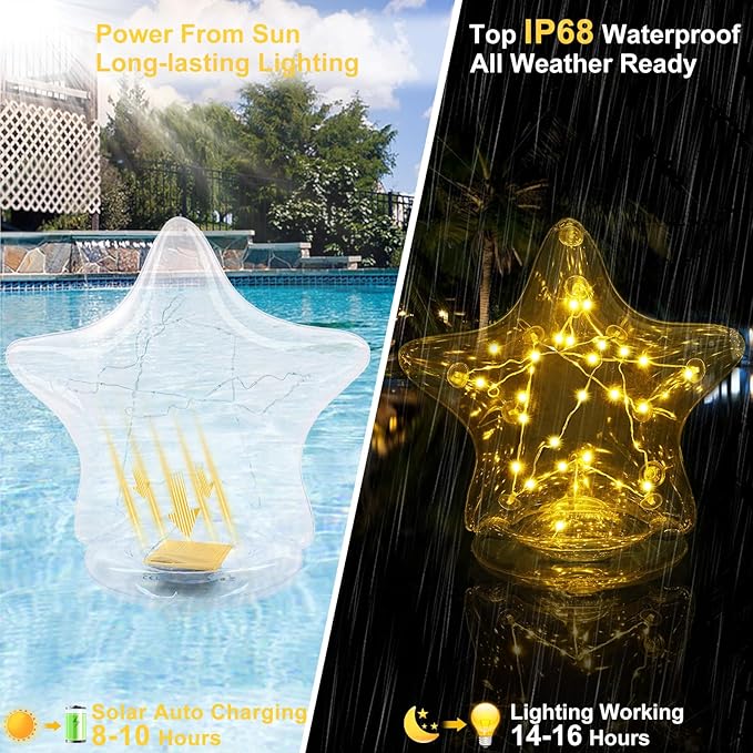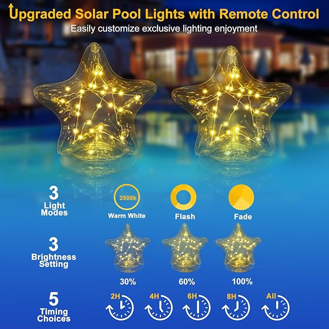 Q265.00 Likiyol – Paquete de 2 luces solares flotantes para piscina con mando a distancia 【Luces solares flotantes de estrella mejoradas 2025】Aspecto único de estrella, carga solar, base a prueba de viento, modo multiluz de control remoto, esta luz inflable de piscina añade romance a la noche tranquila y abre tu nueva experiencia de luces de piscina Control remoto, 3 modos de luz, 5 opciones de sincronización y 3 opciones de brillo: control remoto, más conveniente. 3 modos de luz a elegir: fijo, desvanecimiento, flash. 5 opciones de tiempo: 2 horas, 4 horas, 6 horas, 8 horas y siempre encendido para satisfacer sus necesidades en diferentes escenarios. 3 opciones de brillo: 30%, 60%, 100%. Personaliza sin esfuerzo los patrones de iluminación y el brillo deseados mediante el control remoto, lo que te proporciona una experiencia de iluminación de piscina brillante y cómoda. 【Tamaño grande mejorado de 17 pulgadas y base resistente al viento】Nuestras luces de piscina se han actualizado a un tamaño más grande de 17 pulgadas, lo que te da una experiencia visual más intensa que tus luces flotantes regulares de piscina. También hemos diseñado especialmente una base única a prueba de viento para garantizar que la luz inflable de la piscina pueda funcionar constantemente en la piscina. Disfruta del extraordinario tiempo de piscina que traen las luces de la piscina. Absolutamente impermeable, confiable socio de piscina: las luces solares flotantes impermeables IP68 cuentan con un nuevo diseño de sello integrado. Cada uno ha sido probado profesionalmente para resistencia al agua y calidad para garantizar que funcione firmemente. Incluso los niños los tiran, todavía se iluminan maravillosamente por la noche. Recomendamos comprar algunos juegos o al menos dos, que cubrirán la mayor parte del área de una piscina de tamaño mediano. Paneles solares mejorados, carga solar eficiente: potencia del sol, di adiós al reemplazo frecuente de la batería y los cables desordenados. El panel solar mejorado aumenta la eficiencia de carga en un 40% y el brillo en un 80%. Carga automática de 8 a 10 horas durante el día, de 14 a 16 horas de iluminación por la noche. Disfruta de la alegría sin fin que traen las luces solares flotantes de la piscina y disfruta del colorido e interesante tiempo de la piscina. Fácil de usar e instalar: diseño único de entrada de aire plano, te hemos equipado con una bomba portátil, que es fácil de inflar. Adecuado para piscinas grandes y pequeñas sobre el piso, piscinas enterradas, fuentes, bañeras de hidromasaje, estanques y spas. También es una opción de decoración al aire última intervensión muy impresionante para fiestas, bodas, jardines, etc. Enviamos a toda la republica pago contra entrega. Aceptamos tarjeta de crédito y debito.