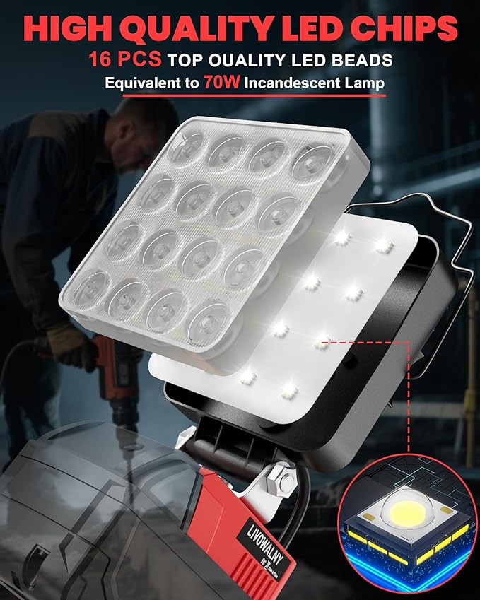 Q285.00 LIVOWALNY Luz de trabajo LED portátil compatible con batería Milwaukee Iluminación brillante: diseñada específicamente con 16 cuentas LED compatibles con la serie de herramientas milwaukee de 18 V, esta linterna de mano proporciona una iluminación potente y brillante, asegurando una visibilidad clara en varios entornos de trabajo. Ya sea en interiores o exteriores, esta luz de inundación ofrece una amplia luz para satisfacer tus necesidades de trabajo. Dos ajustes de brillo: I: 35W 3500LM, II: 70W 7000LM, ya sea que necesite un ajuste más brillante para tareas que exigen mayor visibilidad o un ajuste más bajo para crear una atmósfera más ambiental y tenue, la función de doble brillo garantiza condiciones de iluminación óptimas para diversas situaciones. Funciona con pilas, segura de usar: esta luz de batería está diseñada para ser compatible con baterías de iones de litio Milwaukee de 18 V 48-11-1820 48-11-1822 48-11-1840 48-11-1850 48-11-1852 48-11-1860 58-50 1-1862 y más (batería no incluida), con una placa de protección integrada de bajo voltaje. Cuando el voltaje cae por debajo de 15 V, la luz de trabajo LED se cortará automáticamente. Recordatorio: cuando la luz de inundación de 18 V no está en uso, retírela de la batería para evitar el agotamiento de la batería. Puerto de salida de carga USB A + tipo C: las luces de trabajo LED inalámbricas LIVOWALNY están equipadas con puerto de carga USB de 5 V 2.1 A + tipo C, proporcionando una solución versátil y fácil de usar para alimentar una variedad de dispositivos electrónicos, y pueden satisfacer las necesidades de carga de emergencia de varios dispositivos como teléfonos inteligentes, tabletas, auriculares, altavoces, etc. Amplia aplicabilidad y garantía de 2 años: esta luz de trabajo LED portátil es compatible con baterías de herramientas Milwaukee. Se puede utilizar en una variedad de escenarios como reparación de automóviles, mantenimiento de energía, instalación de plomería y electricidad, camping, iluminación de emergencia, etc. Las luces LED de construcción LIVOWALNY son fiables y vienen con una garantía de 2 años para garantizar tu tranquilidad. Nuestro servicio de atención al cliente 24/7 siempre está disponible para ayudarlo con cualquier pregunta que pueda tener. Enviamos a toda la republica pago contra entrega. Aceptamos tarjeta de crédito y debito.