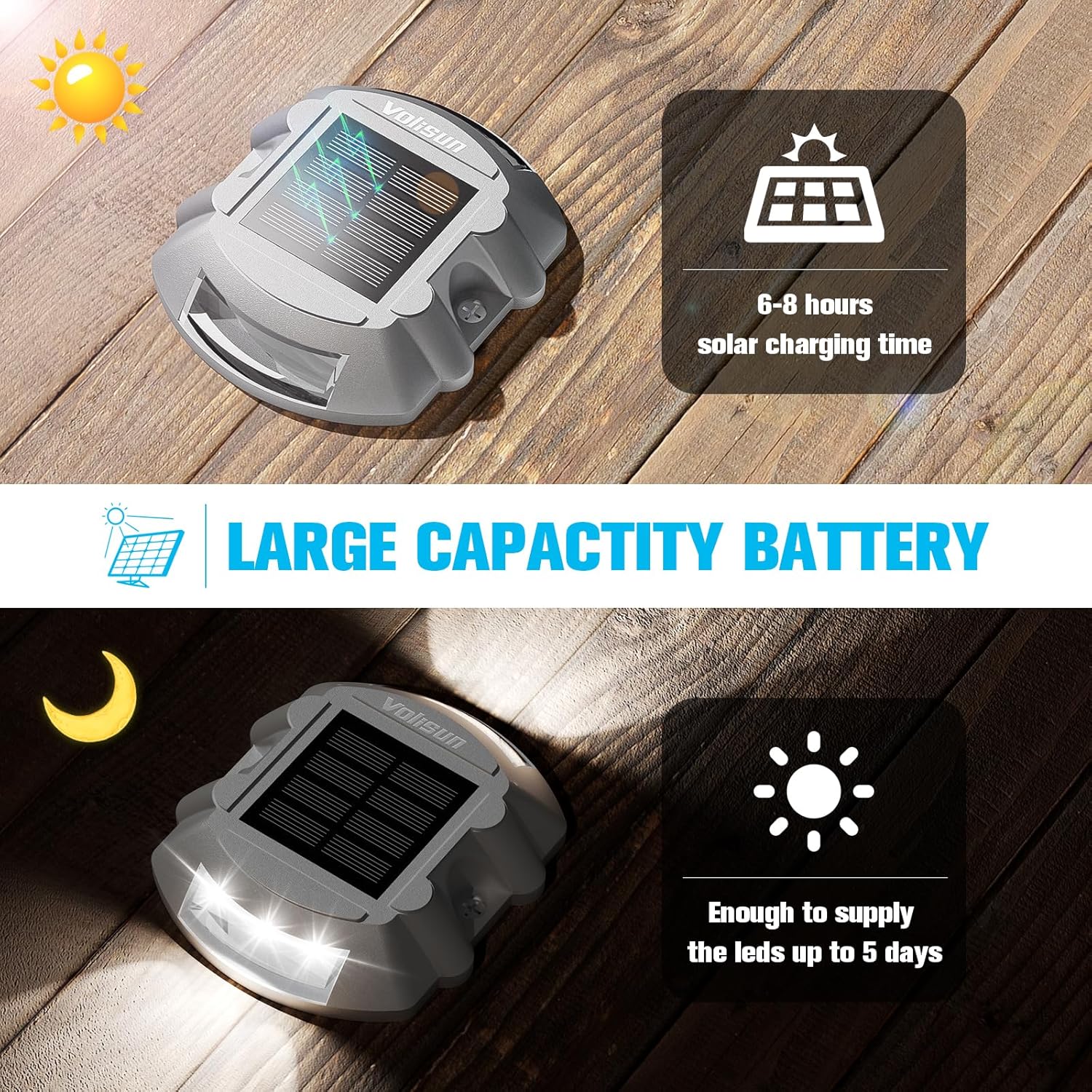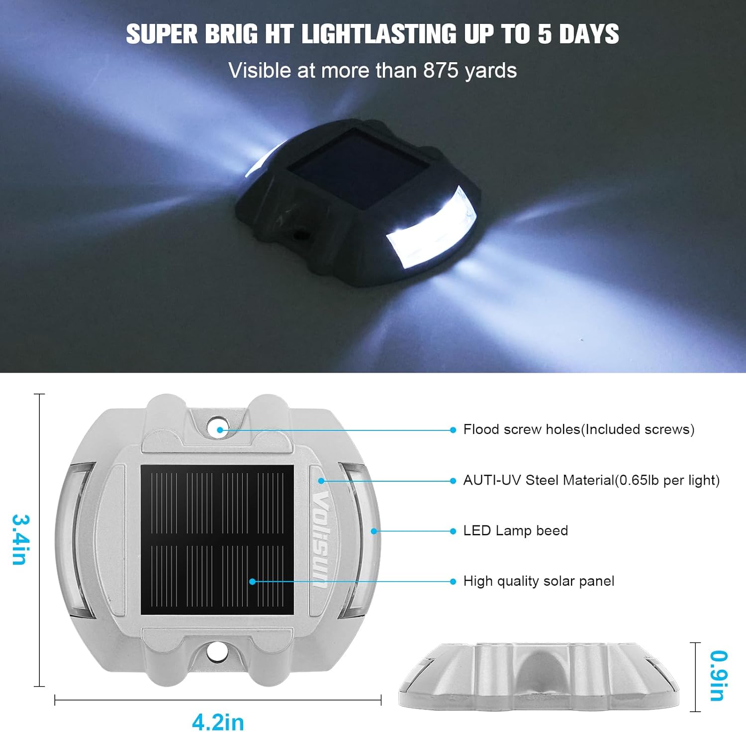 Q675 Luces Solares para Terraza, Paquete de 7 Luces LED IP67 Impermeables para Exteriores (Blanco) 【Funciona con energía solar】Paneles solares recargables ecológicos, se recargan automáticamente durante el día y brillan cuando cae la noche. Cada luz tiene 6 LED que emiten intensidad y luz constante. Podríamos haber llamado a estos Puntos de Cubierta, Puntos de Escalera, Puntos de Muelle o Puntos de Paseo Marítimo 【Largo tiempo de iluminación】Batería de almacenamiento grande de 600 mAh incorporada, 6 a 8 horas de tiempo de carga solar cuando está en buenas condiciones de sol, suficiente para suministrar los LED hasta 5 días 【Resistente al agua y a la presión】Clasificación IP67 permite aguaceros y sumergión. Marco de metal pesado de alta calidad, soporta un 50% más de peso que otras luces, lo que significa que no se dañará incluso si el coche o el camión corren sobre él 【Se instala en minutos】 Esta luz se puede instalar rápidamente en cualquier suelo donde pueda absorber la luz solar directamente. Sin cableado, puedes fijarlo con tornillos o pegamento, 12 tornillos incluidos en el paquete (igual que el tornillo JP2023A), los tornillos están más en línea con los hábitos de uso. Enviamos a toda la republica pago contra entrega. Aceptamos tarjeta de crédito y debito.