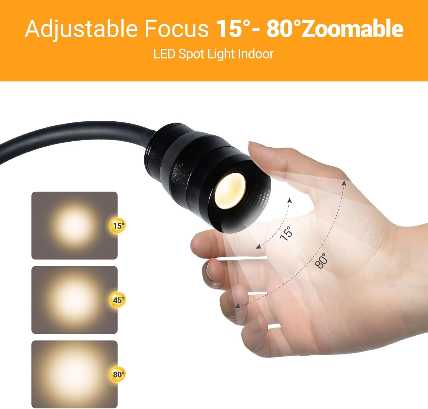 Multifunción: 3 temperaturas de color, 10 niveles de atenuación de brillo, zoomable, clip fuerte, cuello de cisne flexible, puede ser ángulo de haz ajustable de 15° a 80° de acuerdo a tus necesidades para ser una luz de lectura de cabecera, lámpara de libro, luz de escritorio para niños, luz de trabajo, luz de planta, etc. para niños mayores