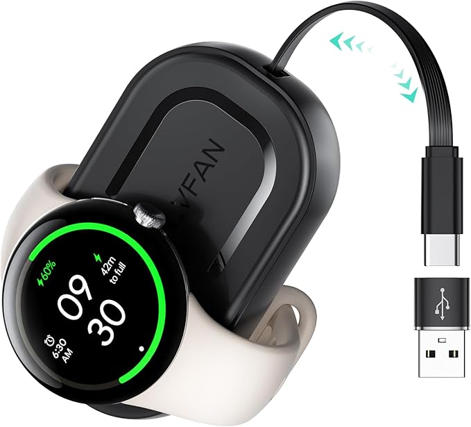 Q224.000 LVFAN Cargador retráctil para Pixel Watch 3/2, cable de carga portátil 【Cargador con cable retráctil】: El cargador tiene un cable retráctil ajustable incorporado que se puede extender hasta 70 cm y ha sido probado para 5000 retracciones. Dile adiós a los cables enredados y a un entorno de carga desordenado. 【Diseñado para Pixel Watch 3/2】Este cargador inalámbrico es compatible con Google Pixel Watch 3/2, Fitbit Sense/Sense 2, Versa 3/4. El módulo magnético incorporado hace que tu reloj se alinee automáticamente y se mantenga seguro en su lugar para una carga óptima. 【1,5 horas de carga completa】El cargador magnético ofrece la velocidad de carga original para tu reloj, cargar completamente tu reloj solo toma 1,5 horas. Chip inteligente incorporado con protección contra cortocircuitos, protección contra sobrecarga, protección contra sobretensión y funciones de protección contra sobrecalentamiento, la carga segura está más asegurada. 【Carga universal de doble puerto】Diseño de doble puerto USB-C y USB-A integrado, adecuado para tipos universales de puertos de alimentación en la vida diaria, puede enchufar el cargador en un banco de energía/computadora portátil/adaptador de pared/cargador de automóvil/regleta de enchufes u otros dispositivos con puertos de carga USB-A o USB-C para cargar el reloj. 【Portátil y compacto】Lleve este cargador portátil compacto para Pixel Watch más fácilmente en lugar de llevar una base de carga larga y de gran tamaño. Simplemente deslícelo en su bolsillo y podrá llevarlo y usarlo fácilmente en cualquier momento y lugar. Enviamos a toda la republica pago contra entrega. Aceptamos tarjeta de crédito y debito.