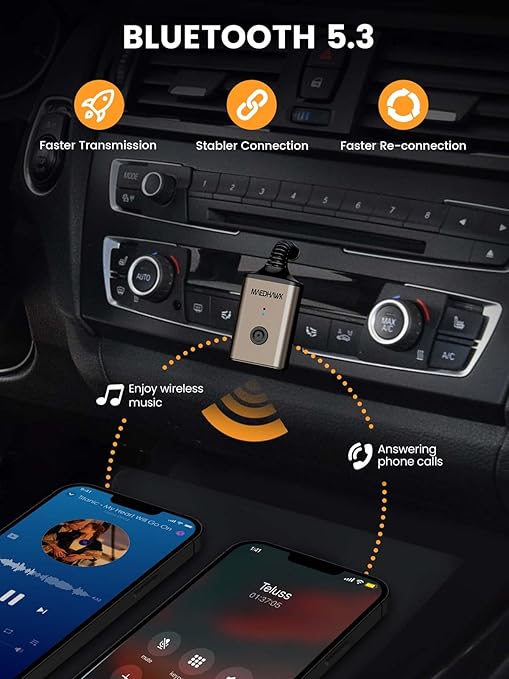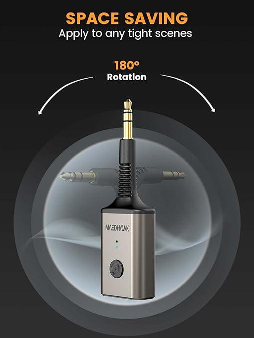 Q220.00 MaedHawk Receptor de audio inalámbrico Bluetooth 5.3 portátil, adaptador giratorio de 0.138 Adaptador Bluetooth para receptor estéreo: el adaptador auxiliar Bluetooth MaedHawk puede convertir tu viejo estéreo de automóvil en un dispositivo habilitado para Bluetooth, altavoces con cable doméstico o auriculares en inalámbrico. Combina este receptor Bluetooth auxiliar con tus teléfonos inteligentes, tabletas, portátiles o computadoras, disfruta de tu música favorita en streaming. Llamadas y navegación manos libres: este adaptador Bluetooth para automóvil tiene micrófono integrado, lo que le permite disfrutar de llamadas manos libres directamente a través de los altavoces del automóvil, y este adaptador de audio Bluetooth admite la transmisión de notificaciones de voz desde la aplicación de navegación existente. No hay necesidad de levantar tu teléfono, haz que tu conducción sea más segura y segura. Conexión Bluetooth 5.3 y dispositivos duales: equipado con el último chipset Bluetooth v5.3, este adaptador Bluetooth de 0.138 in ofrece una conexión estable de 65.6 ft sin demora, transmisión y reconexión más rápidas (conecta automáticamente al último dispositivo conectado). El adaptador auxiliar a Bluetooth se puede emparejar con 2 dispositivos al mismo tiempo, te permite disfrutar de música inalámbrica sin perder una llamada. 10 horas de espera y trabajo mientras se carga: el adaptador estéreo Bluetooth dura hasta 10 horas al hacer llamadas o reproducir música, y se puede cargar completamente en solo 2.5 horas utilizando el cable de carga rápida USB tipo C. Este receptor auxiliar Bluetooth para automóvil también se puede utilizar mientras se carga, es muy conveniente y no te preocupes por la falta de energía del dispositivo. Doblado giratorio de 180°: el adaptador de coche Bluetooth portátil jack de entrada auxiliar es flexible y flexible, ahorra espacio y es adecuado para cualquier lugar estrecho. Puedes llevar este receptor de audio Bluetooth siempre que vayas, también es un maravilloso regalo para compañeros de trabajo, familia, amigos. Si encuentras algún problema durante el uso, ponte en contacto con nosotros y te ayudaremos en cualquier momento. Enviamos a toda la republica pago contra entrega. Aceptamos tarjeta de crédito y debito.