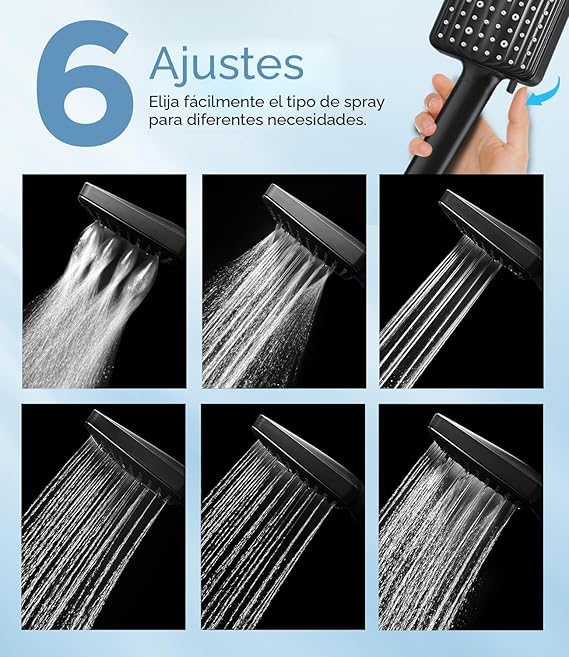 Q285.00 MakeFit Cabezal de ducha filtrado negro, 6 modos de ducha de mano de alta presión con filtro Filtro de cabezal de ducha para agua dura: el cabezal de ducha de mano MakeFit cuenta con un potente sistema de filtración de varias etapas, con varias bolas de piedra mineral de cuentas de filtrado que purifican y filtran eficazmente el agua de tu ducha. Este cabezal de ducha suavizante de agua elimina eficazmente el cloro, el fluoruro, los metales pesados y otras sustancias nocivas del agua, proporcionando protección para tu piel, cabello y la salud general de ti y tu familia Cabezal de ducha con modo de presión de pulgar: el cabezal de ducha de mano MakeFit cuenta con un diseño fácil de usar, con un solo interruptor fácil que permite alternar sin problemas entre diferentes modos con solo tu pulgar, proporcionando comodidad y facilidad de operación. Este cabezal de ducha de mano cuenta con 6 modos de pulverización, incluyendo lluvia fuerte, niebla suave, masaje intenso y más, para satisfacer tus diversas necesidades de ducha. Cabezal de ducha de alta presión y cobertura completa: el spray de mano grande MakeFit cuenta con una estructura interna única y tecnología de aumento de presión, ofreciendo un flujo de agua denso y potente que garantiza una cobertura completa para una experiencia similar a la lluvia, incluso con baja presión de agua. Envuelve tu cuerpo completamente, proporcionando una ducha relajante que ayuda a liberar el estrés y la tensión Panel grande y fácil de limpiar: este cabezal de ducha de mano cuenta con un panel cuadrado grande único y boquillas de ducha densas, específicamente diseñadas para maximizar la cobertura del agua. Este diseño no solo reduce el tiempo de ducha, sino que también ofrece una refrescante experiencia de ducha de cuerpo completo. Además, las boquillas antiobstrucción evitan eficazmente la acumulación de cal y agua dura, por lo que es fácil de limpiar y mantener Calidad superior e instalación sin herramientas: hecho de materiales de primera calidad, este cabezal de ducha multifuncional y potente trae la lujosa experiencia de spa directamente a tu ducha doméstica. No se necesita fontanero. El cabezal de ducha que se fija a la ducha es ligero y fácil de instalar. Las roscas universales G1/2″ se conectan rápidamente a cualquier brazo de ducha estándar en minutos. Tenga la seguridad de que todas las compras están respaldadas por una garantía de 2 años a partir de la fecha original de compra. Enviamos a toda la republica pago contra entrega. Aceptamos tarjeta de crédito y debito.