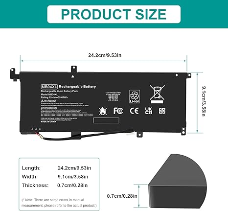 Q325.00 MB04XL – Batería de repuesto para HP Envy X360 M6-AQ000 M6-AQ105DX M6-AQ003DX M6-AQ103DX. Especificaciones: Modelo: MB04XL; Voltaje: 15.4V; Capacidad: 55.6Wh; Celda: 4Cells; 100% nuevo de la fabricación. Las celdas de grado A garantizan cargas rápidas y bajo consumo de energía. Número de pieza compatible: MB04XL MBO4XL HSTNN-UB6X 843538-541 844204-850. Modelos de portátiles compatibles: para HP Envy X360 M6 Convertible Pc Series, Envy X360 M6-AQ000, Envy x360 M6-AQ003DX, Envy X360 M6-AQ005DX, Envy X360 M6-AQ103DX, Envy X360 M6-AQ005DX, Envy X360 M6-AQ005DX. Q103D X y más. Modelos de portátiles compatibles: para HP Envy X360 serie de PC convertibles de 15 pulgadas: Envy X360 15-AQ005NA, 15-AQ100, 15-AQ101NG, 15-ag100nx, 15-AQ102NG15-AQ103NG, 15-AQ104NG, 15-AQ104NG, 15-AQ104NG, 15 -AQ105 NG, 15-AQ106NG, 15-AQ173CL, 15-AQ193MS, 15-AQ004UR, 15-AQ118CA, 15-AQ210NR Múltiples protecciones de seguridad: Nuestras baterías cuentan con múltiples protecciones, incluida la protección del circuito de sobrecarga y sobrecarga, protección contra sobretemperatura y cortocircuitos, nuestras baterías se ensamblan con materiales y placas de alta calidad para garantizar una carga rápida y hasta 500 ciclos de carga durante la vida útil de la batería. Soporte: compatible con 30 días de reembolso y 12 meses de reemplazo. Soporte de correo electrónico 24 horas. La marca Futurebatt proporciona un servicio al cliente amigable. Estamos comprometidos a proporcionar a nuestros clientes el mejor servicio posible. Enviamos a toda la republica pago contra entrega. Aceptamos tarjeta de crédito y debito.