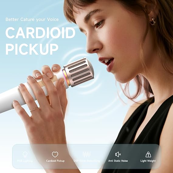 Q415 Micrófonos inalámbricos, con conexión de chip uno a uno, luces LED controlables, duración de 40 hrs 【Tecnología de Conexión Mejorada 2025】–Con el poder de chips de procesamiento de alta velocidad inteligentes duales, nuestros micrófonos inalámbricos logran una recepción de procesamiento de señal verdadera uno a uno, asegurando una conectividad ultraestable y más rápida. La latencia ultra baja de 9 ms supera las velocidades de transmisión tradicionales de 2.4 GHz, ofreciendo una experiencia de canto sin retrasos. [Libertad inalámbrica verdadera]–El micrófono inalámbrico avanzado amplía la conectividad a 200 pies (60 m), garantizando una transmisión estable sin demoras ni interrupciones. Ideal para movimientos sin restricciones durante las actuaciones, es perfecto tanto para eventos en interiores como exteriores. Cabeza calada de oro rosa y luz de respiración degradada: con un elegante cabezal de micrófono calado de oro rosa y una fascinante luz de respiración degradada, el micrófono inalámbrico combina lujo con innovación. Cambia entre modos de iluminación con 2 toques, sincronizando las luces con tu ritmo para una experiencia sensorial inmersiva. Patrón polar cardioide para sonido de calidad de estudio: diseñados con un patrón de captación cardioide, estos micrófonos inalámbricos capturan voces nítidas y claras mientras minimizan el ruido de fondo. Disfruta de una reproducción de sonido inigualable con una alta relación señal/ruido: distorsión cero, rendimiento puro. 【40 horas de canto ininterrumpido】–Una batería recargable incorporada de 1200 mAh admite hasta 40 horas de uso continuo. Ambos micrófonos y el receptor cuentan con carga rápida USB-C (carga completa en 3–4 horas), eliminando la necesidad de reemplazar las baterías. Enviamos a toda la republica pago contra entrega. Aceptamos tarjeta de crédito y debito.