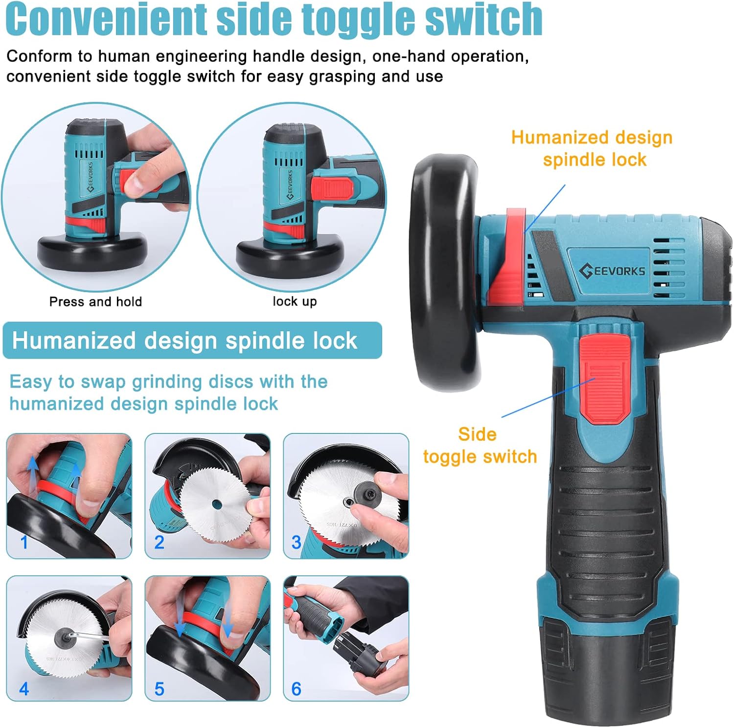 Q320.00 Mini amoladora angular inalámbrica (solo trae 3 discos). Alta velocidad y alta eficiencia: las amoladoras angulares de 12 V adoptan un motor cepillado, arranques rápidos, frenado oportuno, operación suave, circuito de control relativamente simple. La alta velocidad de rotación de 19500 rpm le permite proporcionar una velocidad rápida de eliminación de material, ahorrándole tiempo y energía, y asegurando un trabajo confiable y eficiente. 💪【Amoladora angular mejorada 2023】1- Diseño inalámbrico, alimentado por batería de litio, puedes cargarlo en cualquier momento. 2- La carcasa tiene orificios de ventilación para una alta disipación de calor para enfriar el mecanismo de funcionamiento del sobrecalentamiento. 3- El diseño engrosado del deflector reduce las salpicaduras de residuos de la pieza de trabajo en la máquina, haciendo que el proceso de operación sea más seguro y prolonga eficazmente la vida útil de la máquina. Batería de larga duración: esta mini amoladora angular inalámbrica funciona con una batería de litio de 12 V 2.0 Ah que proporciona una amplia potencia para un uso prolongado, por lo que puedes abordar cualquier proyecto sin preocuparte por quedarte sin jugo. Diseño ergonómico: cambia fácilmente los discos de molienda con un bloqueo de husillo diseñado por humanos. El mango ergonómico está diseñado para un funcionamiento con una sola mano y prácticos interruptores laterales para un fácil agarre y uso. Amoladora angular eléctrica multifuncional: la amoladora inalámbrica se puede utilizar para acondicionar superficies y moler o cortar hierro, así como para mejoras del hogar, como cortar y pulir azulejos, madera, piedra, acero, etc. Perfecto para decoración de interiores, mantenimiento de propiedades como ranurado de paneles de pared, corte de pisos, corte de baldosas de cerámica, mantenimiento de equipos, instalación hidroeléctrica, corte de tuberías de PVC y mantenimiento diario. Enviamos a toda la republica pago contra entrega. Aceptamos tarjeta de crédito y debito.