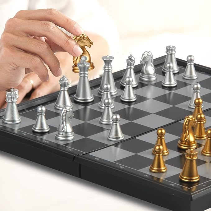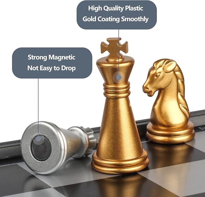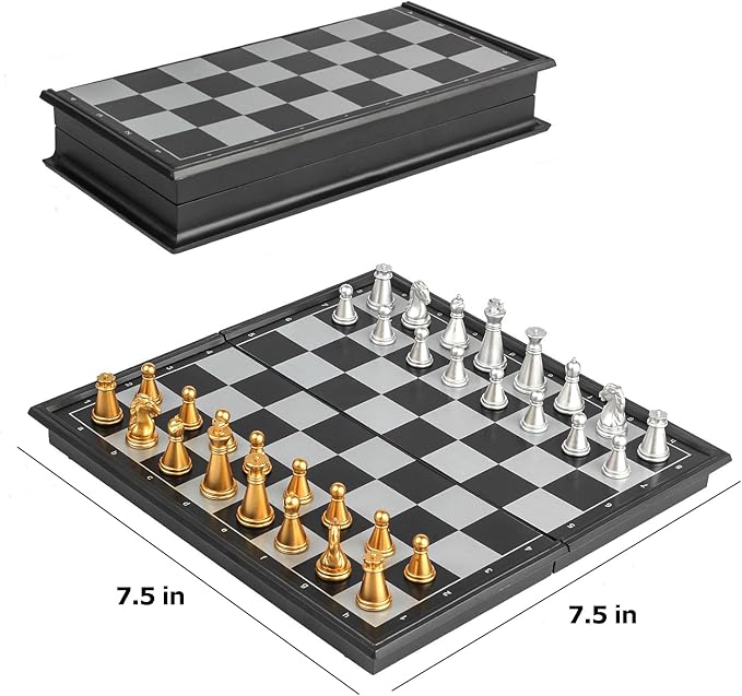 Q145.00 Mini juego de ajedrez de viaje Magnetic Vikutu 7.5 pulgadas Tablero de ajedrez plegable pequeño Mini estilo portátil: eleva tu pequeño juego de ajedrez con nuestro juego de ajedrez magnético de bolsillo que ofrece una gran diversión en un mini paquete. Lleva la emoción del ajedrez en tu bolsillo donde quiera que vayas Atracción magnética: nuestras piezas de ajedrez están equipadas con imanes, lo que garantiza un agarre seguro en el tablero incluso en viajes con baches. Disfruta de un juego de ajedrez magnético ininterrumpido en cualquier superficie con confianza. Conveniencia compacta: juego de ajedrez portátil que mide solo 7.5 x 7.5 pulgadas, nuestro mini tablero de ajedrez es el compañero de viaje perfecto. Fácil de empacar, sin esfuerzo para jugar. Idea de regalo: más allá de un juego, nuestro mini juego de ajedrez es un regalo encantador para niños, amigos o familiares. Su bonito diseño y jugabilidad estratégica lo convierten en una opción de regalo reflexiva y atractiva. Duradero y ligero: hecho de plástico suave de alta calidad, nuestro juego de ajedrez magnético de viaje logra el equilibrio perfecto entre durabilidad y portabilidad. Guarda las piezas de forma segura dentro del tablero para mayor comodidad Enviamos a toda la republica pago contra entrega. Aceptamos tarjeta de crédito y debito.