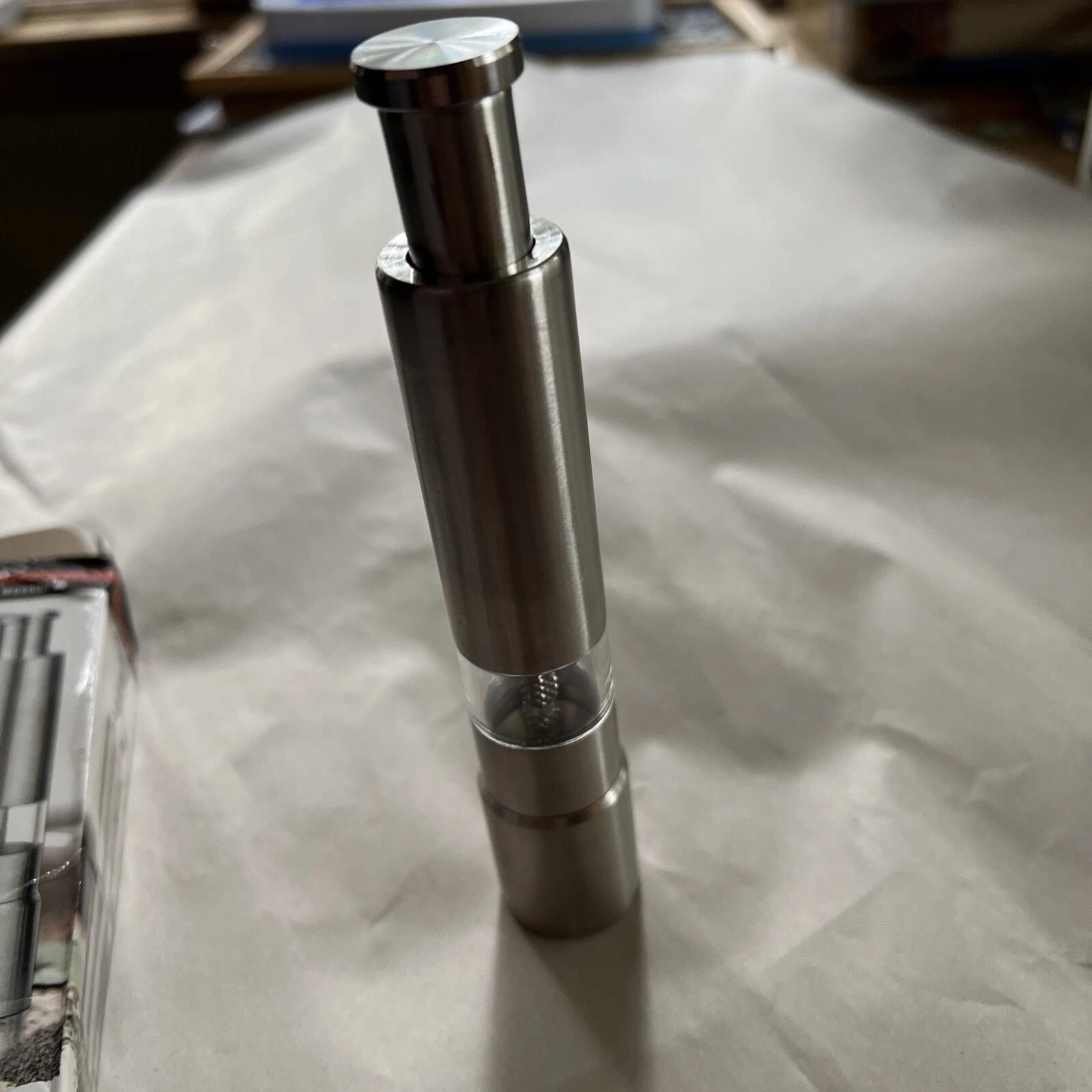Q285 Molinillo de pimienta con botón pulsador y operación con una sola mano MG600A, acero mate, 6″