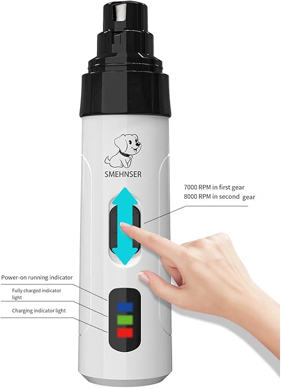 Q325 Molinillo de uñas para perros y gatos pequeños y grandes, eficaz de 2 velocidades + cable USB Bajo consumo de energía: el tiempo de carga tarda 2 horas, se puede utilizar continuamente durante 480 minutos, y se puede utilizar a largo plazo con bajo consumo de energía. Potente y eficaz de 2 velocidades: pulido de uñas de alta velocidad. La potencia del cortaúñas para mascotas se puede ajustar, y el ajuste de 2 velocidades está a tu elección. Material: el cabezal de molienda es de metal de alta calidad, que no se daña fácilmente. Bajo nivel de ruido: el diseño de baja vibración y ruido hace que las mascotas estén más cómodas, y puedes limpiarlas sin problemas. Seguridad: carga USB, que tiene inteligencia y seguridad, y es muy cómodo de usar. Enviamos a toda la republica pago contra entrega. Aceptamos tarjeta de crédito y debito.