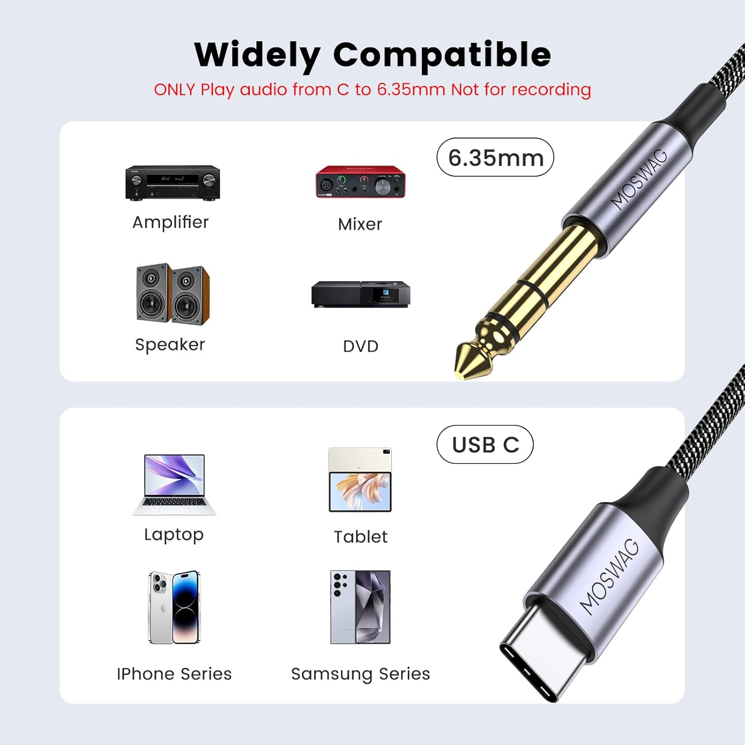Q220 MOSWAG Cable TRS USB C a 0.250 in 1/4 pulgadas 3.28 pies/1M, adaptador de audio tipo C a 1/4