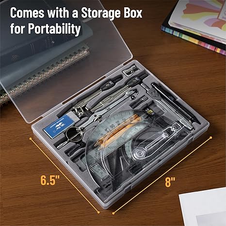 Q295.00 Mr. Pen – Juego de geometría con transportador con brazo móvil de 6 pulgadas Juego de geometría para todos los niveles diseñado en Estados Unidos. El paquete incluye 15 piezas: 2 compás de metal (1 compás de estudio y 1 compás gráfico), 1 mina adicional para el compás gráfico, 1 divisor de metal, 2 lápices para el compás, 1 portaminas (1/64 pulgadas) el compás, 1 paquete de minas de 1/64 pulgadas para el portaminas, 1 borrador, 1 sacapuntas de metal, 1 regla (6 pulgadas), 1 escuadra (30° / 60°), 1 escuadra (45°), 1 transportador, 1 transportador con brazo móvil (6 pulgadas). Juego de geometría de 15 piezas, juego con compás en una bolsa reutilizable, fácil de transportar y almacenar. Medidas en pulgadas y centímetros. El juego de matemáticas/geometría diseñado por expertos en matemáticas experimentados, con todos los artículos esenciales para profesores y estudiantes de cualquier nivel. Enviamos a toda la republica pago contra entrega. Aceptamos tarjeta de crédito y debito.