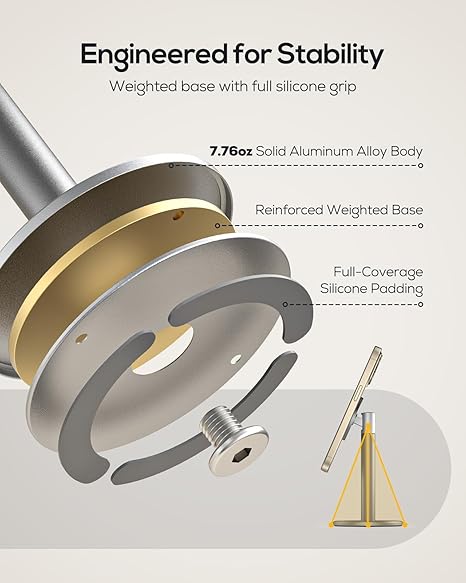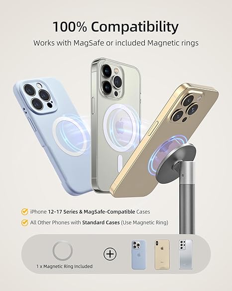 Q185.00 Nulaxy Soporte magnético de aluminio para teléfono celular MagSafe con anillo de metal Magnetico superfuerte: este soporte magnético para teléfono se centra en la estabilidad magnética ultra segura. Sostiene de forma segura teléfonos de hasta 3.5 libras, incluso con fundas gruesas. Magnético de un segundo, nunca se cae. Rotación omnidireccional de 720°: Gira horizontal y verticalmente para una visualización perfecta en modo vertical u horizontal. Ideal para ver videos, videollamadas o trabajo de escritorio. Reduce el deslumbramiento y la tensión del cuello durante un tiempo prolongado de pantalla. Anillo magnético de metal incluido: convierte instantáneamente cualquier funda de teléfono a compatible con MagSafe. Funciona con la serie Phone 13-17 Pro Max y todos los teléfonos inteligentes (por favor, espera más de 1 hora después de fijar el anillo de metal para una fuerza magnética completa). Base de metal de aluminio de servicio completo de 7.76 onzas: A diferencia de los materiales plásticos ligeros, este soporte magnético está hecho completamente de aleación de aluminio resistente, con calidad superior y estabilidad absoluta, prueba de estabilidad de más de 2000 ciclos y cero agitaciones, garantiza su pantalla táctil. Libera tus manos, libera tu potencial: ya sea que estés siguiendo una receta mientras cocinas, tomas notas durante una reunión o simplemente disfrutando del tiempo libre, nuestro soporte mantiene tu dispositivo seguro y accesible. Enviamos a toda la republica pago contra entrega. Aceptamos tarjeta de crédito y debito.