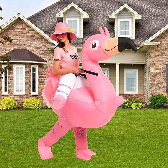 Q445.00 One Casa Disfraz inflable de flamenco para montar en flamenco Tamaño del producto: versión de lujo del disfraz inflable de flamenco. Talla adulta. Talla única para 5.25-5.9ft/63-70.8 pulgadas. Componentes del producto: el paquete contiene una hoja de instrucciones, traje de flamenco inflable, sombrero y bomba de aire. La bomba de aire requiere un banco de energía portátil o 4 pilas AA. (Pilas no incluidas) Excelente artesanía: los disfraces de flamenco para Halloween están hechos de poliéster impermeable de alta resistencia que es contra rasgaduras y desgarros, la excelente costura mejora la calidad de los disfraces inflables. Además, nuestros disfraces proporcionan un potente soplador para inflar el flujo de aire continuo los disfraces. Instalación y precauciones: el juego de disfraz funciona con 4 pilas AA con el soplador, coloca la batería en el bolsillo diseñado. De lo contrario, podría ser sobrecalentamiento y causar accidentes. Enciende la energía de la batería y infla, el disfraz de dinosaurio será inflable en unos segundos. Para un rendimiento óptimo, asegúrate de usar cuatro pilas AA nuevas y de alta potencia. Nuestros disfraces están equipados con ventiladores de alta potencia para mejorar la explosión al instante, lo que conduce a un mayor consumo de batería, recomendamos invertir en baterías duraderas si usas el disfraz durante más de una hora a la vez. , también es recomendable tener baterías adicionales a mano para reemplazar y extender el uso. Enviamos a toda la republica pago contra entrega. Aceptamos tarjeta de crédito y debito.