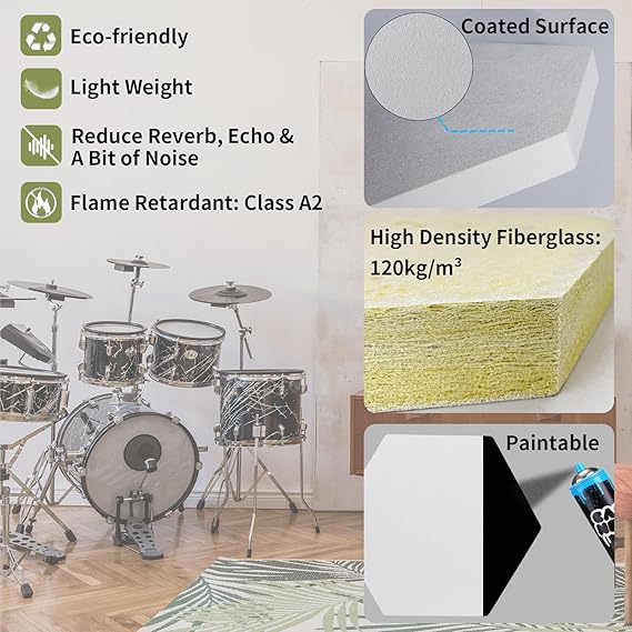 Q485 Paneles acústicos de techo de 14.2 x 12.4 x 1.2 pulgadas, 4 piezas, absorbe el sonido para oficina 【ESPECIFICACIÓN】: Tamaño: 36 x 31,5 x 3 cm (tolerancia de corte: 2%), paquete de 4; Peso: 0,35 kg cada panel; Densidad: 120 kg/m³ (7,49 lb/pie³); Material: Fibra de vidrio premium con superficie completamente recubierta para evitar la picazón tanto como sea posible 【SUSPENSIÓN EN EL TECHO: DOBLE ABSORCIÓN DE SONIDO Y AHORRO DE ESPACIO】: En comparación con pegarse directamente a una superficie, suspender el panel acústico del techo permite la absorción de sonido en ambos lados, no solo en uno. Además, ahorra mucho espacio en tu habitación al colgar estas baldosas de techo de fibra de vidrio desde arriba en lugar de montarlas en la pared 【EXCELENTE TRATAMIENTO ACÚSTICO】: Nuestros paneles de sonido son gruesos y están hechos de 100% fibra de vidrio, lo que reduce enormemente las reflexiones de sonido. Ellas funcionan de manera impresionante para reducir la reverberación, el eco y el ruido ambiental en la habitación. Ideal para cine en casa, estudios de grabación, estudios en casa, oficinas, salas de batería, podcasts, cabinas vocales, sistemas de altavoces estéreo, salas de música, salas en vivo, salas de audio, salas de transmisión y más 【Elegante y seguro para interiores】: Con nuestros paneles de techo suspendido arriba, es como caminar hacia una habitación llena de nubes. Relaja tu cuerpo y alivia tu corazón. Además, son pintables, proporcionando infinitas posibilidades de bricolaje para que coincida con tu propio estilo. Son ecológicos, ligeros y retardantes de llama (clase A2) 【ACCESORIOS PARA COLGAR INCLUIDOS Y FÁCIL INSTALACIÓN】: Nuestros paneles de tablero de fibra de vidrio recubierta vienen con accesorios para colgar. Es fácil instalarlos en el techo siguiendo el video de instrucciones en esta página. Enviamos a toda la republica pago contra entrega. Aceptamos tarjeta de crédito y debito.