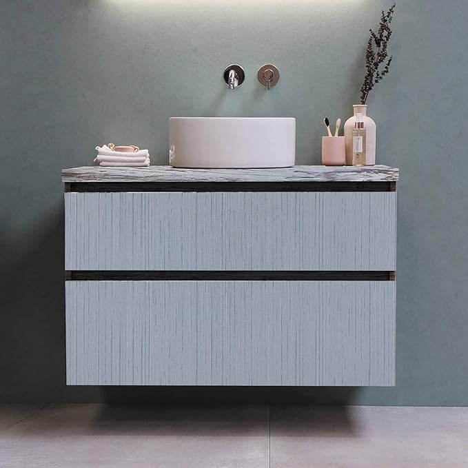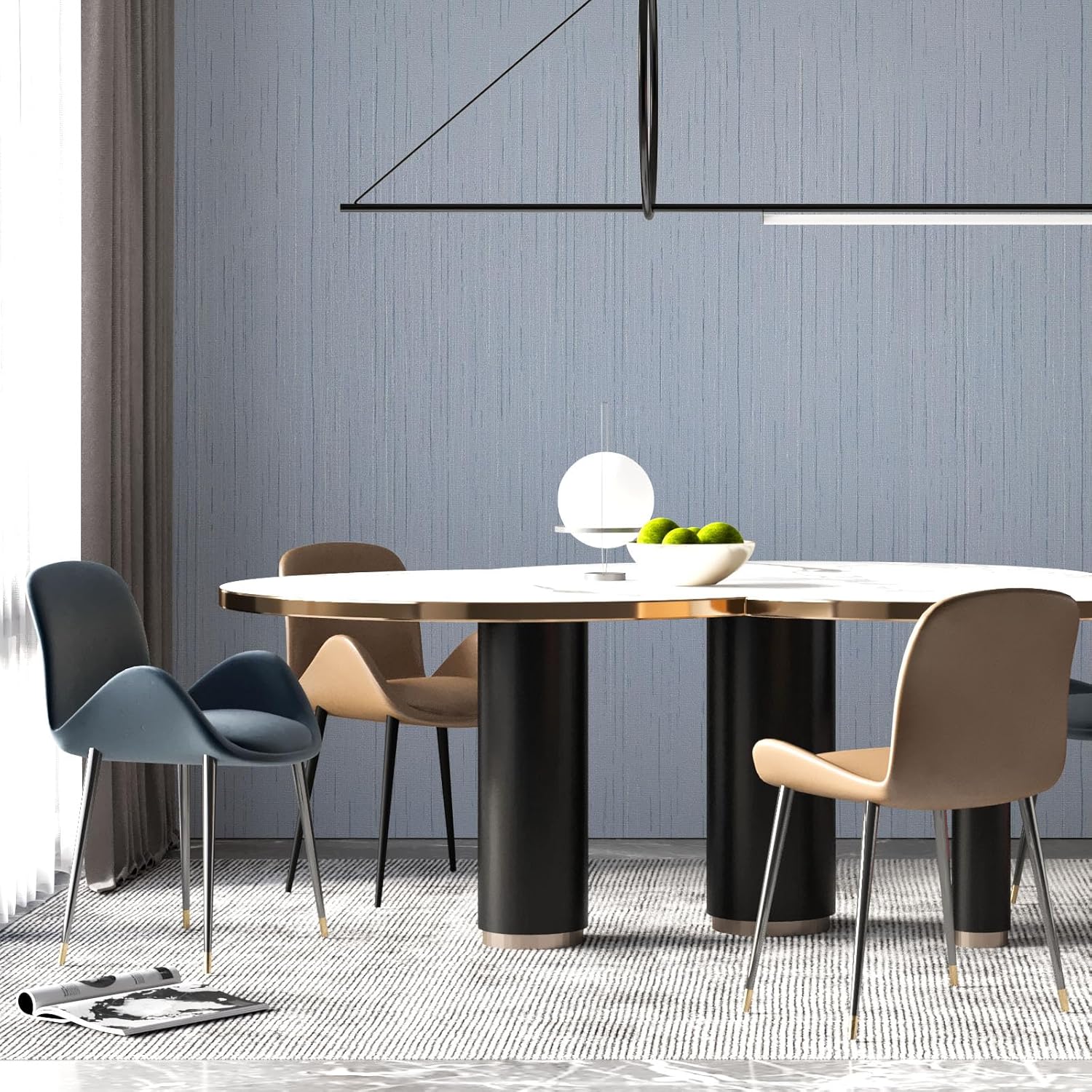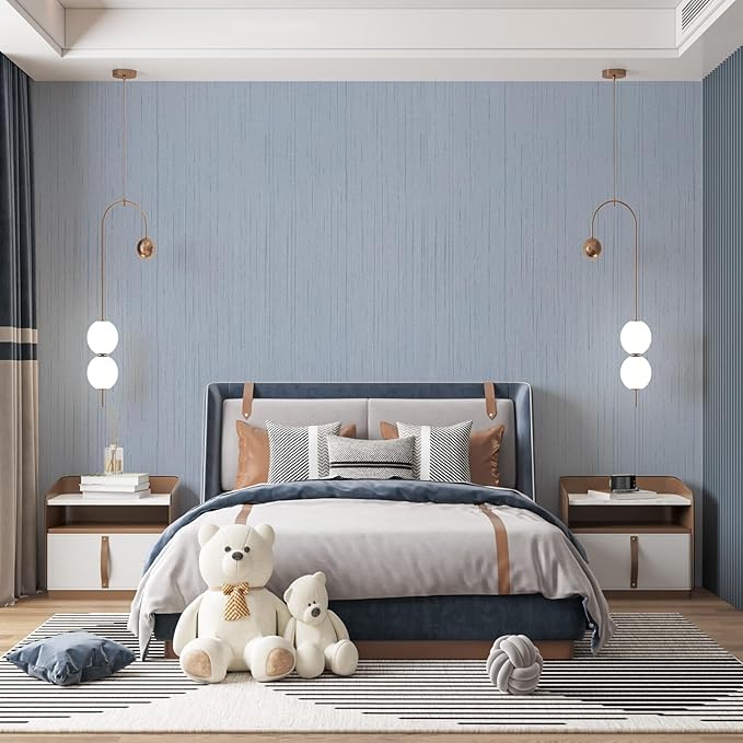 Diseño texturizado realista: este papel tapiz de tela de hierba para despegar y pegar está hecho de vinilo. Qué superficie es una textura de tela de hierba sintética. El color base azul de este papel tapiz autoadhesivo de tela de hierba con patrón de líneas finas plateadas hace que el papel adhesivo azul sea más vintage y exquisito.