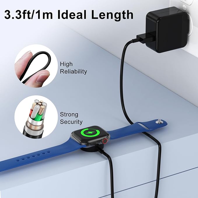 Carga eficiente e inteligente: este cable de carga para iWatch proporciona un modo de carga más seguro y rápido, solo tarda de 2 a 2.5 horas en cargarse completamente, ahorra tiempo