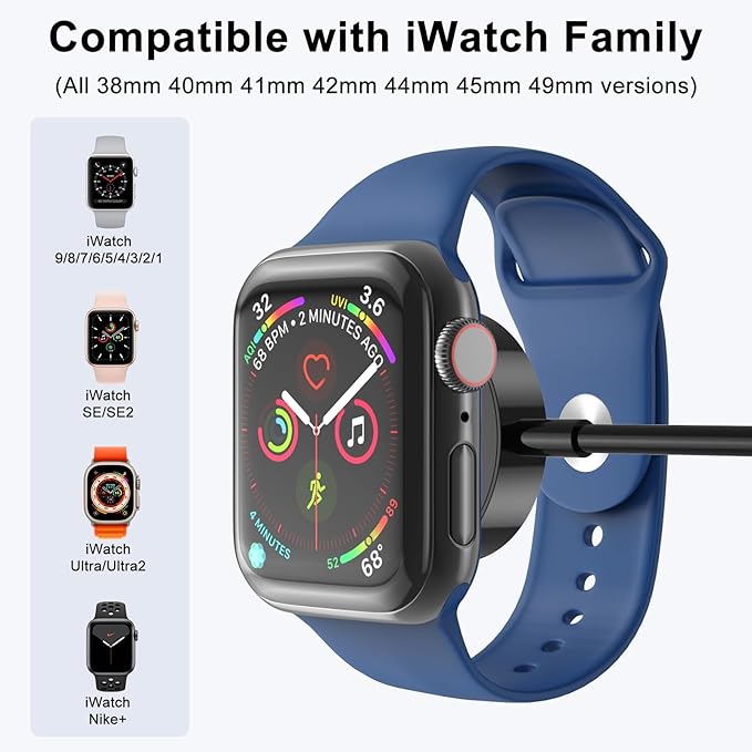 Compatibilidad universal: este cargador magnético para iWatch es compatible con iWatch Ultra Series 9/8/7/6/SE2/SE/5/4/3/2/1 (incluyendo versión de 1.496 in, 1.575 in, 1.614 in, 1.654 in, 1.732 in, 1.772 in, 1.929 in)