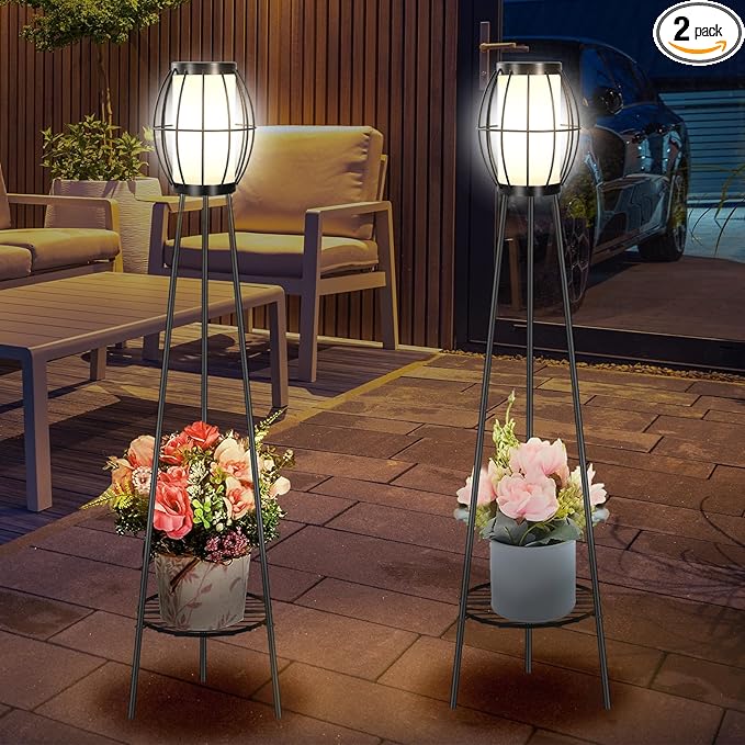 Q495 Paquete de 2 luces solares para exteriores con soportes para plantas, lámparas de pie solares Innovadoras lámparas de pie solares: a diferencia de las lámparas de pie solares tradicionales, nuestra farola solar cuenta con un concepto de soporte para plantas. Este innovador diseño te permite colocar tus plantas favoritas o artículos diversos, herramientas, etc., añadiendo un toque de naturaleza fresca a tu jardín al aire libre, patio, terraza. Ahorro de energía de encendido/apagado automático: se ilumina automáticamente todas las noches/interruptor de apagado automático, panel solar más grande, luces solares de alto rendimiento, permanecen encendidas hasta 8-12 horas. Robusta resistencia a la intemperie: hecha de materiales metálicos de primera calidad y una construcción robusta, nuestra lámpara de piso para exteriores está diseñada para soportar las condiciones climáticas más duras. Con una clasificación de impermeabilidad IP65, puedes colocarlo con confianza en cualquier espacio al aire libre, independientemente de la lluvia, nieve, heladas o temperaturas extremas. Enviamos a toda la republica pago contra entrega. Aceptamos tarjeta de crédito y debito.