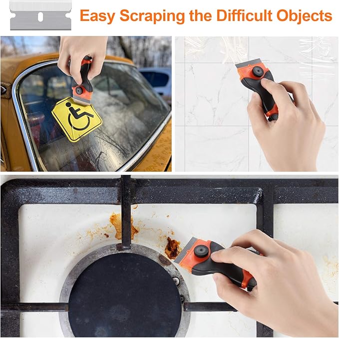 Q110.00 Paquete de 2 raspadores de cuchillas de afeitar, herramienta raspadora 2 en 1 Herramienta raspadora 2 en 1: la herramienta raspadora de afeitar que ahorra tiempo con cuchillas de plástico y metal puede satisfacer sus diversas necesidades. La hoja de plástico es afilada pero segura y sin rayar la superficie. La hoja de metal puede eliminar múltiples manchas difíciles Te permite limpiar cómodamente: nuestra herramienta de limpieza raspadora adopta un diseño ergonómico de mango curvado y antideslizante. Es pequeño y fácil de agarrar, lo que te proporciona una buena comodidad y control. Haz que tu limpieza sea más fácil y segura Herramienta raspadora multifuncional: esta herramienta de eliminación de raspadores se puede utilizar para quitar calcomanías, pegatinas, pegamento, etiquetas, pintura, tinte de ventanas, paredes, automóviles, azulejos, pisos y vidrios. También puede eliminar los residuos de alimentos en los hornos, encimeras de cocina y estufas de vidrio Herramienta raspadora de limpieza segura: La perilla de seguridad en ambos lados del raspador, proporciona una buena estructura de estabilidad. Y el raspador de doble extremo está equipado con cubiertas protectoras de seguridad, que son convenientes para el almacenamiento y evitan cortes accidentales a ti mismo Fácil de usar: solo necesita aflojar la perilla del raspador y desmontar la cubierta superior para reemplazar fácilmente la cuchilla. Además, le recomendamos que tenga especial cuidado al reemplazar la hoja de metal Enviamos a toda la republica pago contra entrega. Aceptamos tarjeta de crédito y debito.