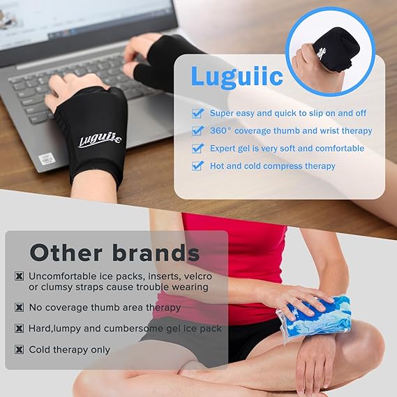 Q245.00 Paquete de hielo portátil para muñeca para pulgar, compresa fría y caliente. Tejido de licra de vanguardia agradable al tacto Material innovador de gel de vanguardia: la bolsa de hielo de gel sólido sin perfume de grado experto proporciona terapias de calor y frío, la compresa fría de compresión de muñeca 100% a prueba de fugas se puede llevar de forma segura en la piel desnuda que te permite moverte libremente. La combinación de gel sólido suave y tela de licra ahumante es una innovación que puede aportar una experiencia fresca y cómoda al alivio del túnel carpiano y el dolor de artritis para las manos. 【Envoltura de hielo para muñeca】La cómoda bolsa de hielo de mano es muy fácil y rápida de poner y quitar, sin paquetes de hielo voluminosos y duros o velcro y correas desordenadas. Muñequeras especialmente diseñadas con una bolsa de hielo para el pulgar. Se adapta a las manos izquierda y derecha. Conveniente para actividades diarias, mensajes de texto, golf, cocina, escritura, mecanografía, etc. Terapia de calor y frío: todo lo que tienes que hacer es congelar o calentar en microondas la envoltura de secado en frío y luego estarás listo para el tratamiento de compresa fría o compresa tibia, respectivamente. Las muñequeras Luguiic están científicamente formuladas para proporcionar la cantidad de tiempo recomendada durante 15-20 minutos sin el riesgo de dañar o quemar la piel. Aunque puedes sentir que el exterior de las mangas se calienta, nuestro diseño de compresión bloquea el frío para una penetración profunda en la zona tratada. Terapia de compresión en frío de 360°: la almohadilla térmica de muñeca para microondas proporciona una compresión fácil y cómoda de calor y frío de 360° justo donde más lo necesitas y una cobertura del 100% del área de tratamiento. La muñequera reduce eficazmente el dolor del túnel carpiano, dolor de TFCC, artritis reumatoide, tendinitis, tenosinovitis de quervain, inflamación, hinchazón. Recuperación fácil y cómoda que permite te mueves libremente. Es la bolsa de hielo ideal para lesiones. Excelente servicio al cliente: todas las compresas calientes y frías de Luguiic están hechas de material de primera calidad. Si no estás satisfecho con tu bolsa de hielo de muñeca, no dudes en ponerte en contacto con nosotros 1 año de proceso de reemplazo sin complicaciones. 36/ Algunos consejos para la atención: Evite microondas durante más de 20 segundos. Si no está lo suficientemente caliente, pon el otro lado en el microondas y calienta durante 10 segundos (menos de microondas de 700 W). Si tu potencia de microondas es más de 700 W, la bolsa de hielo de muñeca debe calentarse durante 10 segundos y poner el otro lado en el microondas y calentar durante 5 segundos. Enviamos a toda la republica pago contra entrega. Aceptamos tarjeta de crédito y debito.
