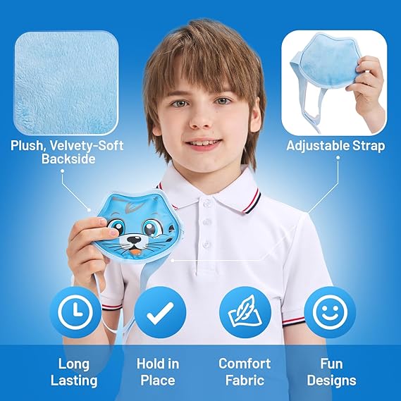 - Diseño colorido y adorable: Nuestras compresas frías para lesiones vienen en cuatro vibrantes colores, lo que las hace divertidas y atractivas para los niños. Estas adorables compresas frías se convertirán rápidamente en las favoritas de cualquier niño que necesite consuelo.