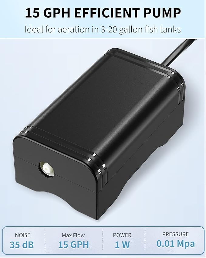 Pawfly Mini bomba de aire de acuario para tanques de peces nano de 3 a 20 galones.