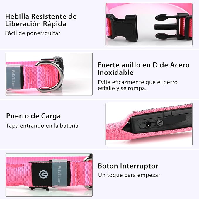 Q220.00 PcEoTllar Collar de perro iluminado para caminar por la noche, collar de perro con luz LED rosa. Coloridos collares de perro con luz RGB: el collar de perro iluminado de PcEoTllar está diseñado para brillar con luz colorida del arco iris. Cada collar LED para perro tiene siete colores de luces, puedes elegir cualquier persona que te guste, o incluso cambiar un color de luz todos los días siguiendo tu estado de ánimo. Luces seguras para perros para caminatas nocturnas: Fibra óptica súper brillante para mejorar la visibilidad de sus perros en la oscuridad o en los puntos ciegos, para evitar accidentes automovilísticos o cualquier otro peligro potencial. Al mismo tiempo, también puede anti-pérdida. Cuando tu perro corre afuera, nuestro collar te hará sentir más a gusto. Collar de perro LED recargable: el collar de perro PcEoTllar es impermeable. No te preocupes por el collar cuando tu perro esté nadando o jugando bajo el agua. Cierre la cubierta de carga suave después de cargar y manténgase alejado del agua de mar. Recargable con cualquier otro dispositivo USB diario es más conveniente, ¡ya no pagarás por las baterías! La potencia total puede durar 10 horas. Collar de perro iluminado duradero y ajustable: material de cincha 100% poliéster súper fuerte con costuras de alta resistencia para máxima resistencia y seguridad del perro. Fácil de poner con una hebilla de liberación rápida. Y la longitud de nuestro collar de perro LED se puede ajustar para adaptarse a cualquier tamaño. Incluso puedes utilizar el collar de perro LED para animales como ovejas, ciervos o ponis. 100% Satisfacción Servicio al Cliente: Hemos trabajado muy duro para ofrecerle el mejor producto y esperamos cumplir con sus expectativas. Si tienes alguna pregunta sobre nuestro collar de perro iluminado, no dudes en hacérnoslo saber y te ayudaremos a resolver el problema lo antes posible. Enviamos a toda la republica pago contra entrega. Aceptamos tarjeta de crédito y debito.