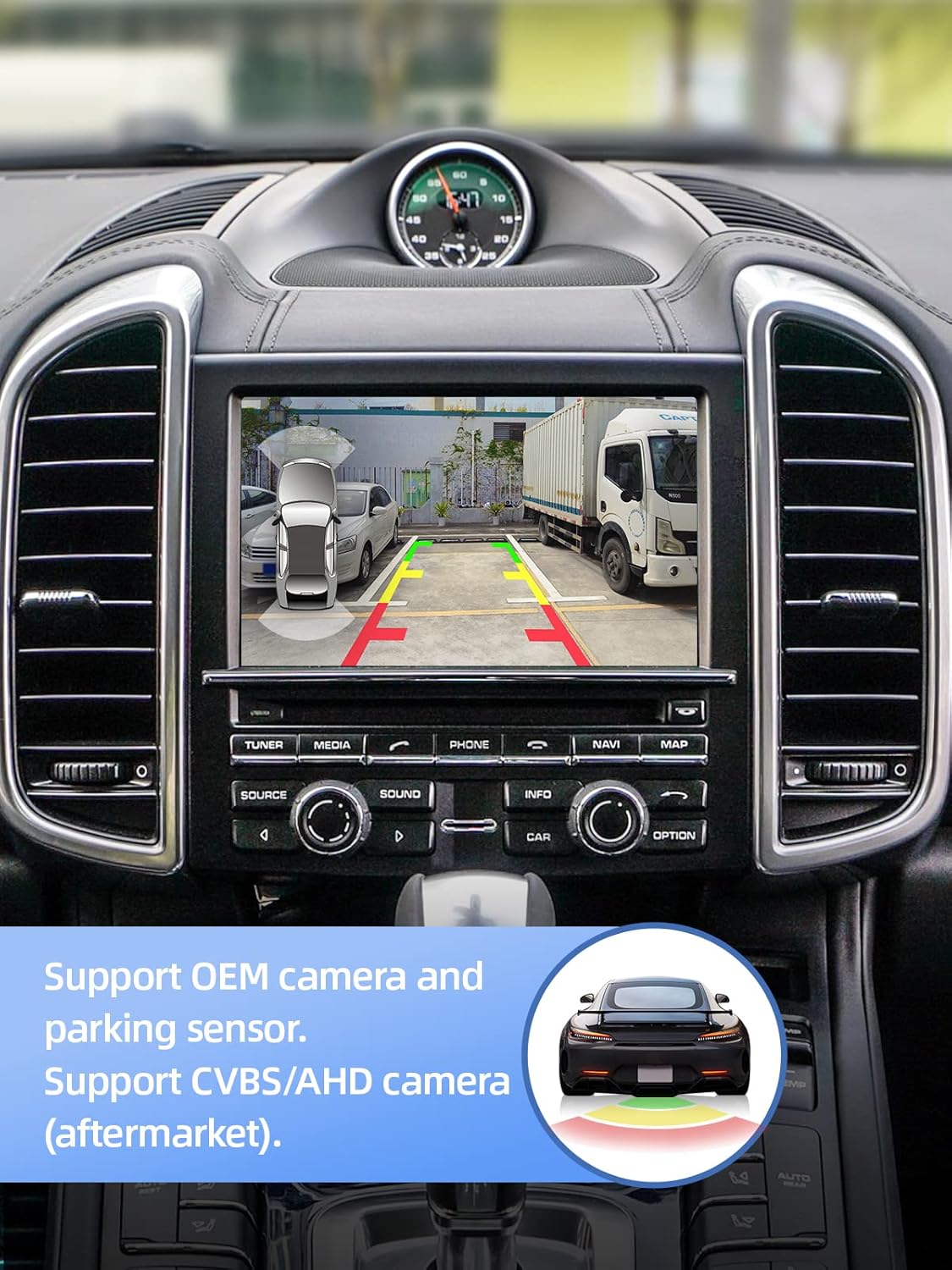 Instalación no destructiva: 1. Soporta control de volante y botones de radio. 2. Apoye la cámara original o la cámara del mercado de accesorios y el sensor de estacionamiento. 3. Soporte de voz despierta Siri y Google Assistant. 4. Porsche PCM 3.1 Carplay no es necesario utilizar un micrófono externo. 5. No es necesario insertar una caja adicional debajo del tablero.