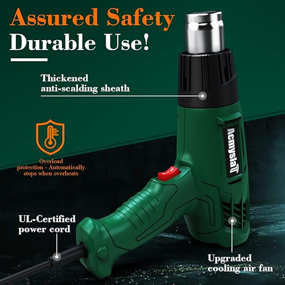 Q225.00. Pistola de calor, kit de pistola de aire caliente resistente, ajustes de temperatura duales. Consejos: Durante el primer uso, el papel de mica puede emitir un ligero humo a medida que se seca el pegamento. Este es un proceso normal y no afectará el rendimiento o la seguridad de la pistola de calor. Si el pegamento no se ha secado por completo, es posible que también note humo durante los usos posteriores, pero esto se detendrá una vez que el pegamento se haya evaporado por completo. Las múltiples capas de papel de mica proporcionan aislamiento adicional y garantizan un funcionamiento seguro en todo momento. Pistola de calor de 2 modos: calienta hasta 932 ℉ (932.0 °F) en segundos. Dos modos: I: 572℉ (572.0 °F), 250L/min; II: 932℉ (932.0 °F), 500L/min. Esta pistola de aire caliente se calienta rápidamente en segundos fácilmente para ayudar a completar tareas de mejora del hogar de bricolaje, presta atención a la seguridad durante el uso. Protección contra sobrecarga: la pistola de aire caliente AcmyslaT utiliza componentes calificados que pueden enfriar rápidamente la sustancia a alta temperatura; esta pistola de calor también posee un protector de sobrecarga para evitar dañar tu pistola de calor de soldadura y circuito. Larga vida útil y diseño ergonómico: hecho de plástico ABS de alta calidad y acero inoxidable. Cuenta con alambre de calentamiento de oxidación y motor de cobre para alta temperatura y resistencia a la corrosión. Mango ergonómico y soporte integrado que garantizan comodidad y facilidad de uso. 4 accesorios versátiles y amplias aplicaciones: la pistola de calor incluye 4 boquillas multiusos para diversas tareas. Ideal para manualidades, envoltura retráctil, resina epoxi, calefacción de PVC, eliminación de pintura y descongelación de tuberías. Utilizado para pernos oxidados, pernos oxidados, tuberías de agua congeladas, eliminación de pintura, fuego de carbón, termorretráctil, quitar pintura, doblar tubería de PVC, aplicar película, etc. 100% garantía de satisfacción: La pistola de calor puede emitir humo blanco poco después del primer uso, lo cual es normal. Puede operar en US 110/120V. Reemplazo de la ayuda en 7 días, garantía de calidad de 1 año. ¡Contáctenos en cualquier momento para obtener ayuda!. Enviamos a toda la republica pago contra entrega. Aceptamos tarjetas de credito y debito.