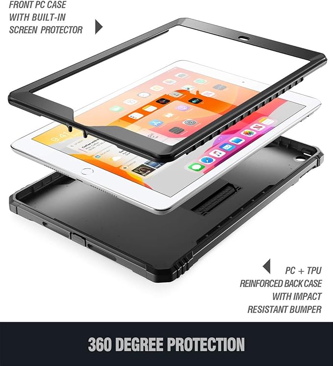 Protección de 360 grados: protege tu tablet iPad 10.2 2021/2020/2019 desde todos los ángulos. Incluye: protector de pantalla integrado, cubiertas de puerto, parte trasera de policarbonato resistente y TPU que absorbe los golpes.