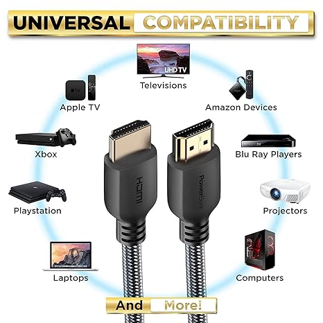 Q125.00 PowerBear – Cable HDMI 4K 10 pies, nailon trenzado y conectores dorados Pack de 1 Negro. Cable HDMI 4K: cable HDMI macho a macho admite video 4K @ 60Hz, 2K, 1080P, profundidad de color HDR de 48 bit/px, TrueHD 7.1, canal de retorno de audio (ARC) y Ethernet Cable HDMI de alta calidad: este cable HDMI tiene alambre de cobre de 30 WG, triple estaño blindado en un nailon de alta calidad trenzado doble con conectores resistentes a la corrosión chapados en oro para una imagen y sonido garantizados de nivel superior Compatibilidad completa: el cable HDMI 4K de ultra alta velocidad admite transferencia de 18 Gbps y es compatible con versiones anteriores de cable HDMI (1.3/1.4/2.0/2.0a) NO para 8K Cable HDMI universal: funciona con todos sus dispositivos HDMI. Compatible con reproductores de Blu-ray, Fire TV, Apple TV, PS5, PS4, XBox One, Nintendo Switch, computadora, laptop, monitor, proyector y más. Un cable HDMI esencial para todos tus dispositivos domésticos y de oficina 10 pies 1 paquete: un cable HDMI de 10 pies (9.8 ft) de espesor 0.24 pulgadas (0.236 in). Enviamos a toda la republica pago contra entrega. Aceptamos tarjetas de credito y debito.