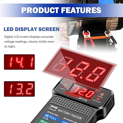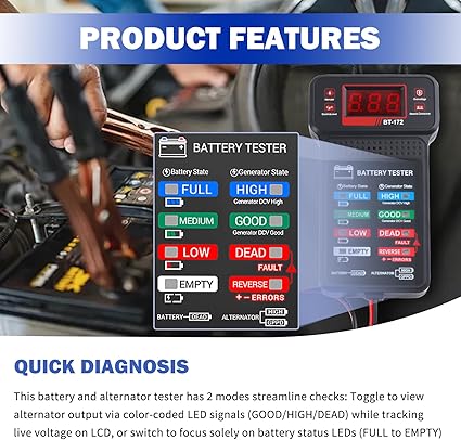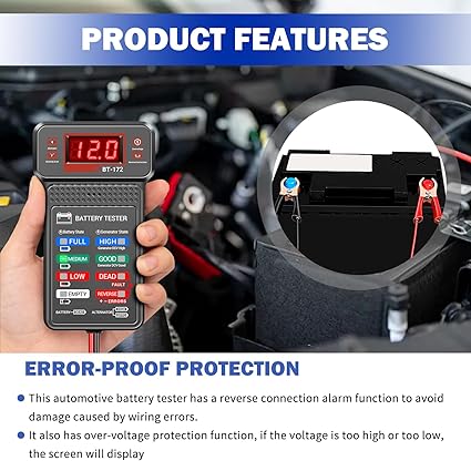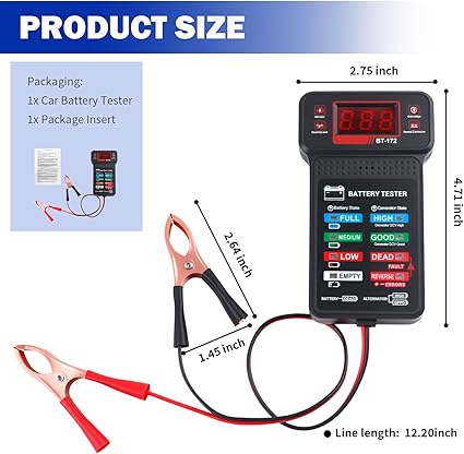 Q185 Probadores de batería de coche con pantalla LCD e indicadores LED, probador de carga de batería Pantalla dual clara: la pantalla LCD digital muestra lecturas precisas de voltaje mientras que las luces LED codificadas por colores muestran instantáneamente el estado de salud de la batería. Este sistema de doble pantalla proporciona una lectura fácil en cualquier iluminación, ayudándole a evaluar rápidamente la potencia de su vehículo con este confiable probador de baterías para automóviles Seguimiento de voltaje en tiempo real: Monitoree las fluctuaciones de voltaje en vivo durante el funcionamiento del motor directamente en la pantalla LCD. El probador de batería de automóvil captura cambios instantáneos al arrancar tu vehículo o acelerar el motor, revelando problemas ocultos del sistema de carga antes de que causen fallas en la carretera Protección a prueba de errores: La conexión inversa activa el indicador REVERSE rojo con alarma audible. Simplemente conecta el clip rojo al terminal positivo (+) y el negro al terminal negativo (-) – los indicadores claros guían la configuración adecuada con este probador de carga de batería de 12V para automoción Diagnóstico rápido: Este probador de batería y alternador tiene 2 modos para simplificar las comprobaciones: Alterna para ver la salida del alternador a través de señales LED codificadas por color (BUENO/ALTO/MUERTO) mientras se rastrea el voltaje en vivo en la pantalla LCD, o cambia para enfocarse únicamente en los LED de estado de la batería (LLENO a VACIO) Compatibilidad multivehículo: funciona con cualquier sistema de 12 V, incluidos automóviles, motocicletas, vehículos recreativos, barcos y tractores. El probador universal de carga de batería es esencial para garajes domésticos o talleres de reparación, lo que permite el mantenimiento en motores de gasolina y diésel con una precisión constante. Enviamos a toda la republica pago contra entrega. Aceptamos tarjeta de crédito y debito.