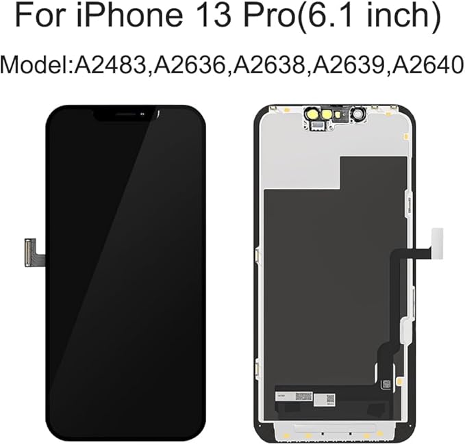 Compatible con: solo para reemplazo de pantalla de iPhone 13 Pro, compatible con el modelo (A2483, A2636, A2638, A2639, A2640) (6.1 pulgadas). No lo utilices en ningún otro modelo.