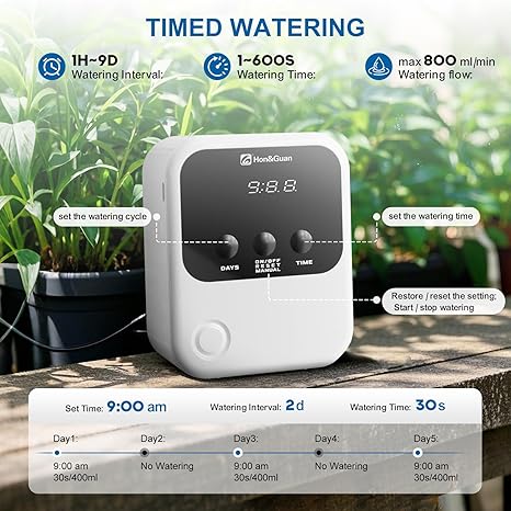Q325.00 Regadera automática para plantas de interior, soporte para 15 plantas de interior en maceta Cuidado de las plantas sin preocupaciones: el sistema automático de riego de plantas puede regar tus plantas de acuerdo con el modo preestablecido, lo que significa que no tienes que regar manualmente tus plantas y puedes disfrutar de tu tiempo libre o vacaciones sin preocuparte por tu vegetación Programa de riego personalizable: el dispositivo de riego de plantas puede ajustar fácilmente tus intervalos de riego de 1 a 24 horas o cada 1 a 9 días. Personaliza la duración del riego de 1 a 600 segundos, con un caudal robusto de 27.1 fl oz/min. Ajuste el horario y el tiempo en función de sus necesidades específicas, asegurando que sus plantas reciban la cantidad perfecta de agua, exactamente cuando la necesitan. Goteros ajustables: el sistema de riego cuenta con 15 goteros ajustables, por lo que es ideal para hasta 15 plantas en maceta. Adapte la salida de agua para cada gotero individualmente en función de los requisitos de riego únicos de diferentes plantas. El gotero único diseñado para entregar agua directamente a la zona de la raíz de las plantas, conservando hasta un 70% más de agua en comparación con los métodos convencionales Mecanismo antisifón integrado: puedes colocar la bomba de agua en cualquier lugar sin preocuparte por el reflujo, lo que hará que el agua siga goteando mientras el temporizador se detiene. Nuestra función antisifón integrada es más estable que las válvulas externas, eliminando las molestias de diseño e instalación para todo su sistema de riego. Fácil instalación: los kits de riego automático por goteo incluyen: 1 sistema de riego, 1 manguera de silicona (10 pies), 1 tubo de PVC (33 pies), 1 filtro, 15 juntas en T, 15 goteros ajustables, 1 cable de carga tipo C, 1 manual de usuario (idioma español no garantizado). La instalación tarda solo unos 15 minutos, por lo que es lo suficientemente fácil para que incluso los jardineros novatos la configuren, ¡todo mientras disfrutan de la experiencia de bricolaje! Batería de larga duración: equipado con una batería integrada de 2000 mAh, el sistema de riego de plantas de interior puede durar hasta 3 meses con una carga completa, dependiendo de tu frecuencia de riego. Perfecto para unas largas vacaciones o períodos de tiempo fuera de casa, puedes estar seguro de que tus plantas permanecerán hidratadas. Nota: Después de una carga completa, dejar la bomba funcionando continuamente proporcionará hasta 90 minutos de funcionamiento. Recordatorio esencial: carga el dispositivo de riego completamente antes del primer uso o fuera de casa. Durante la instalación, asegúrese de que la tubería esté conectada de forma segura tanto a los goteros como a las juntas en T para evitar fugas. Ejecuta el sistema de riego durante 10 segundos después de la instalación para llenar el tubo con agua. Enviamos a toda la republica pago contra entrega. Aceptamos tarjeta de crédito y debito.