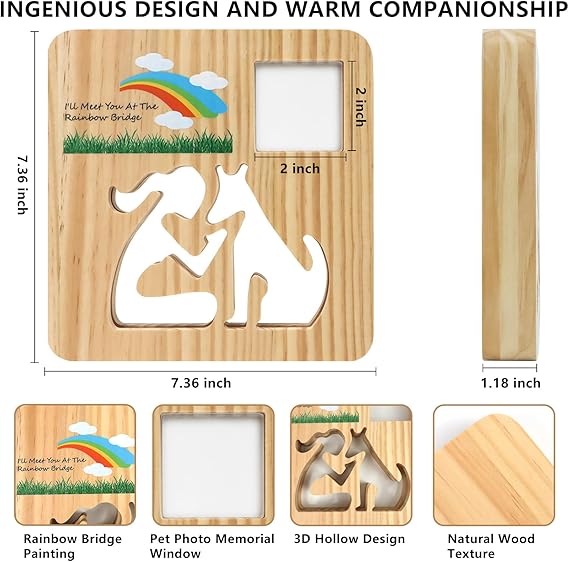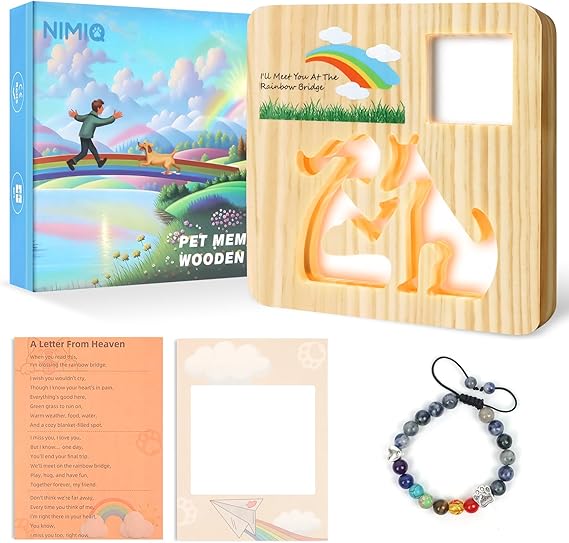 Q245.00 Regalos conmemorativos conmemorativos para perros con forma de puente arcoíris: regalo de duelo Diseño hermoso y significativo: Esta lámpara conmemorativa de madera tiene un patrón de puente de arcoíris en la superficie, que simboliza que tu perro ha partido a un mundo maravilloso sin dolor ni tristeza. El diseño hueco de un humano y un perro en el frente muestra la profunda amistad y los recuerdos inolvidables entre tú y tu perro. 【Manteniendo recuerdos preciosos】- No es solo una lámpara, es un recuerdo para preservar cálidos recuerdos con tu perro. Emite una luz blanca cálida que te hace sentir que tu perro todavía está a tu lado, compartiendo cada hermoso momento contigo. Se puede colocar en un estante, mesita de noche o escritorio como una decoración cálida y elegante. Ventana de acrílico transparente: Esta lámpara conmemorativa tiene una ventana de acrílico transparente de 5 x 5 cm en la esquina superior derecha, donde puedes colocar una foto de tu perro para que te acompañe por siempre. También puedes cambiar las fotos según tus preferencias. 【Material duradero y de alta calidad】- Hecho a mano con madera de pino natural, la veta de la madera variará debido a la singularidad de cada pieza. Ligero y resistente, su superficie está finamente pulida y pintada. Alimentado por USB, tira de luz LED incorporada, ahorro de energía y larga duración. Un regalo especial y conmovedor: no solo sirve para conmemorar a tu querido perro, sino también para expresar tu pésame y apoyo a quien lo haya perdido. Con una hermosa caja a color, una tarjeta de bendición con espacio para escribir y una exquisita pulsera conmemorativa ajustable, este es el regalo conmemorativo más considerado para tu mascota, que le alegrará la vida y le hará sanar. Enviamos a toda la republica pago contra entrega. Aceptamos tarjeta de crédito y debito.