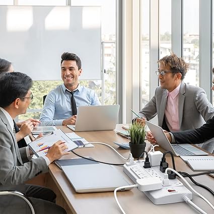 Q365.00 Regleta protectora de sobretensiones de 18 tomacorrientes – Cable de extensión de enchufe plano Regleta de alimentación con 18 tomas y 4 puertos USB: 18 salidas AC y 4 puertos USB (5V/3.0A, 17W) regleta con cable de extensión de alimentación resistente de 6 pies (1875 W/15 A), protector de sobretensiones (2100 julios) con protección contra sobrecarga protege contra picos y fluctuaciones, muchos enchufes para un escritorio de computadora funciona Ideal para toda la electrónica un jugador necesita. Cable de extensión de 6 pies con enchufe plano y bridas para cables: el cable de alimentación de enchufe plano en ángulo derecho de 6 pies lo hace más flexible, las bridas de sujeción reutilizables pueden atar el cable no utilizado y hacerlo mejor organizado. 18 salidas de protección contra sobretensiones de CA: El circuito protector de sobretensiones complementario de 3 niveles que se compone de TVS (supresor de voltaje transitorio), MOV (varistor de óxido metálico), GDT (tubo de descarga de gas), con una capacidad mínima de absorción de energía de 2100 julios, podría proteger sus dispositivos mucho más rápida y confiablemente que los circuitos de protección contra sobretensiones MOV de 1 nivel de otra marca. Seguridad y certificado: Certificado de seguridad ETL, con cable de extensión y otros componentes principales certificados por ETL. El interruptor de protección contra sobrecorriente limita la corriente de trabajo de la regleta a cierta configuración, por lo que no se calentará durante el uso. Protección del medio ambiente y carcasa de policarbonato resistente al fuego con retardante de llama a 1382 ℉ hace que sea más duradera y más larga. Nuestro servicio posventa: Certificado ETL, nuestro servicio al cliente amigable y confiable le responderá dentro de las 24 horas. Puedes comprar con confianza, con nuestro servicio de devolución de 30 días y garantía de 12 meses. Enviamos a toda la republica pago contra entrega. Aceptamos tarjeta de crédito y debito.